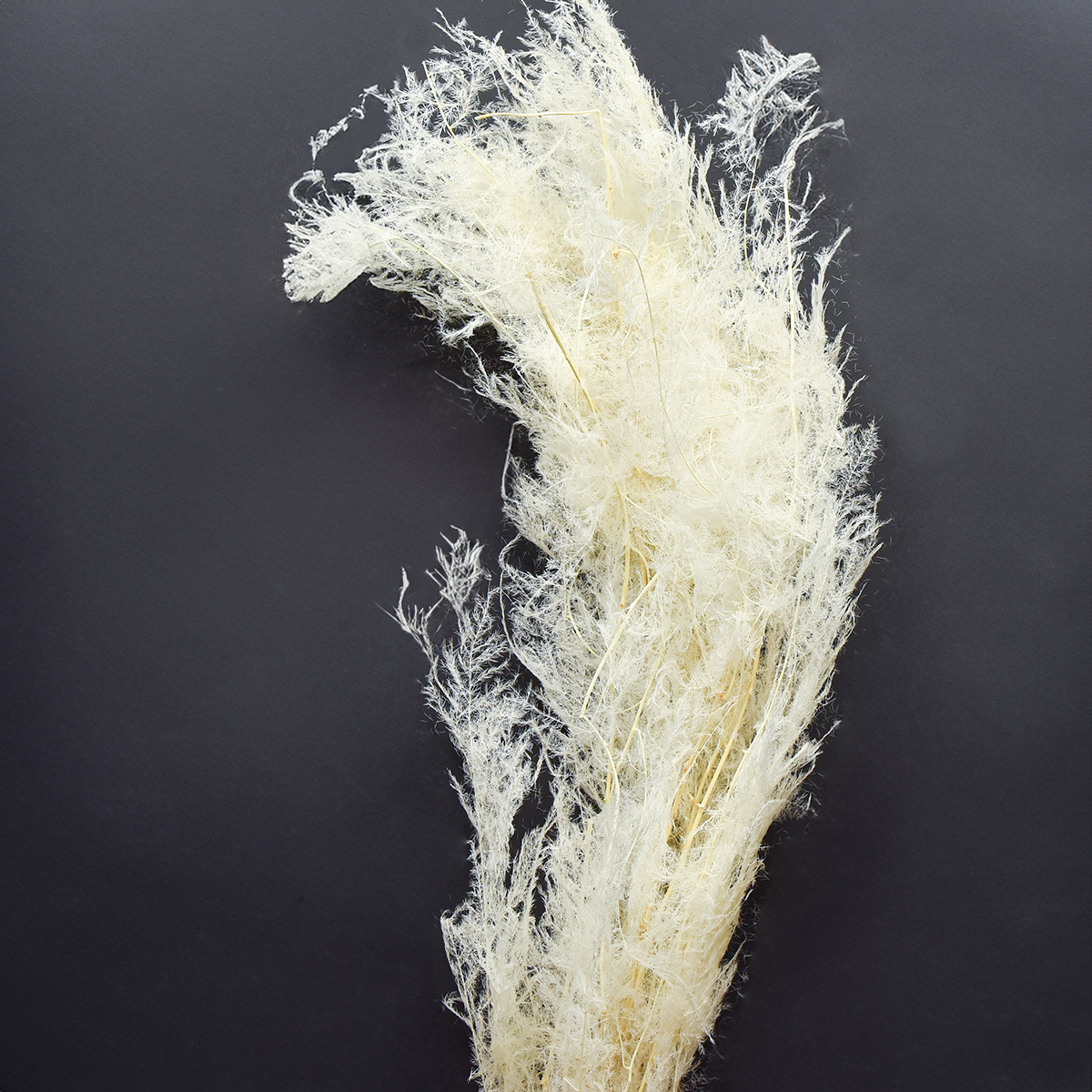 Cream-colored dried ornamental asparagus grasses symbolize purity, elegance, and a touch of luxury. In the language of flowers, the color cream represents innocence and peace, bringing a relaxed and harmonious atmosphere to your spaces. The combination of color and texture makes this ornamental asparagus a favorite for wedding decorations and creates an inviting environment for festive occasions. Dried flowers like these are ideal for creating lasting memories.
