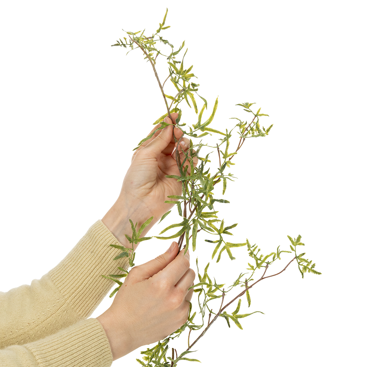 The asparagus garland is a true all-rounder in the world of decoration. Its slender, delicate leaves give it an airy lightness, making it ideal for modern, rustic, or even classic interior design styles. At 170 cm long, it offers plenty of scope for creative ideas: whether as a table decoration, for wrapping railings, or as an atmospheric frame for doorways and windows. Made of robust plastic, the artificial garland shines in a fresh green hue that looks deceptively real. It is durable, easy to clean, and remains in perfect condition for a long time. Perfect for anyone who wants a low-maintenance yet stylish decoration. For a particularly harmonious look, it can be combined with flowers or LED fairy lights. This complements the overall look and creates an even more festive ambiance. This garland is a real highlight, especially at weddings, receptions, or outdoor events. Think of it as a romantic arch for your ceremony or a stylish border for buffets. It fits anywhere elegance and naturalness are desired – and without much effort. Once arranged, it remains stable and attracts many admiring glances.