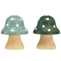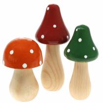 Wooden Mushrooms, Autumn Decoration, Mushrooms, Green, Red, Orange, H6.5cm, 9 Pieces
