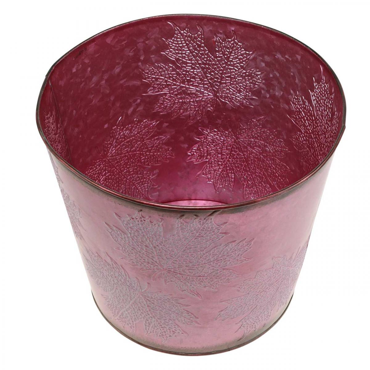 Autumn pot, plant bucket, metal decoration with leaves wine red Ø25.5cm H22cm