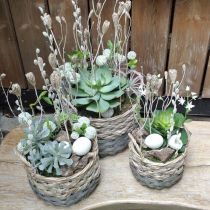 Basket for planting, utensil with handles, organizer white, natural Ø32/28/23cm H30/25/19cm set of 3