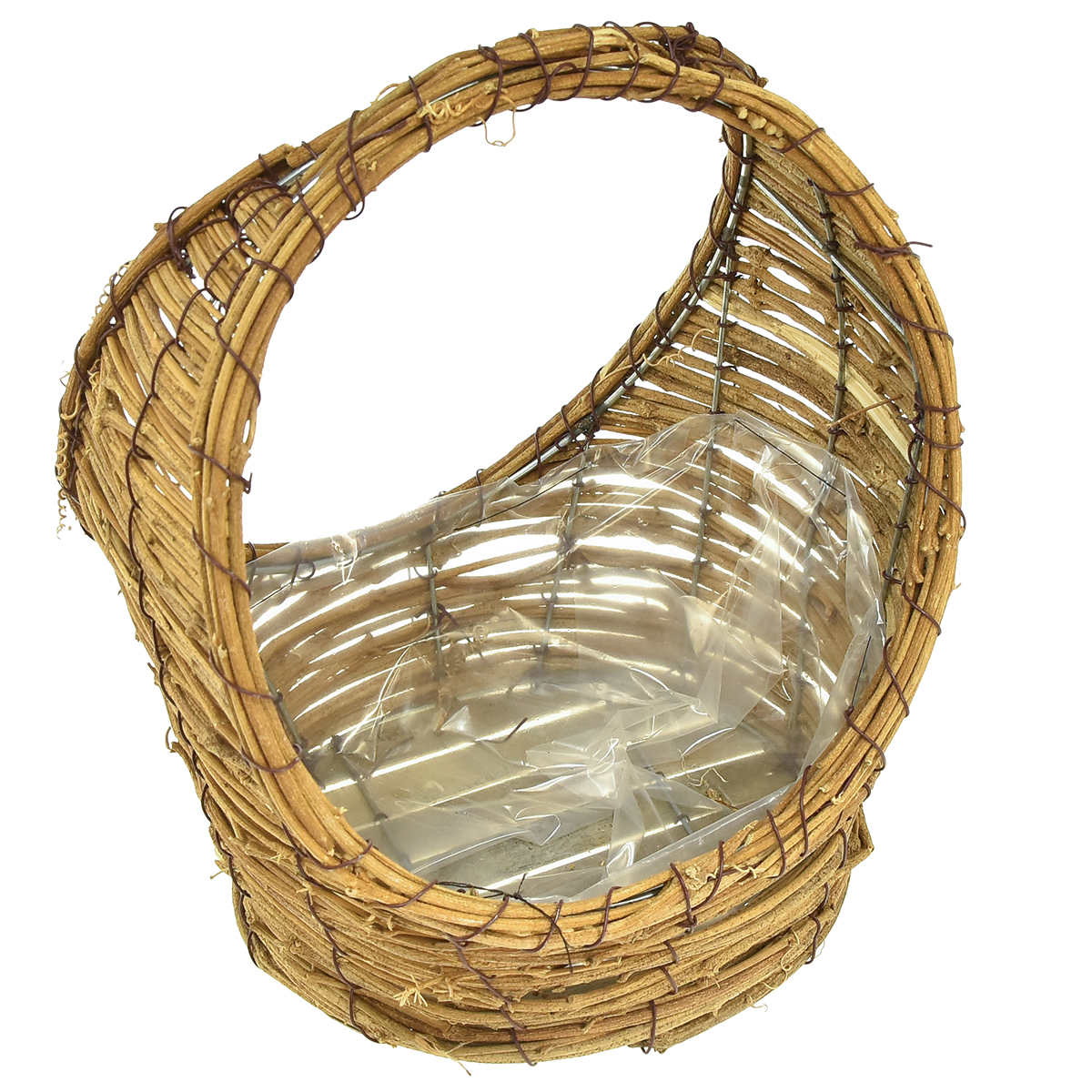 These oval handle baskets made from natural vine offer an environmentally friendly solution to display your flowers and herbs in style. Thanks to the grey chipboard bases and foil lining, the baskets are ready for planting. The handle allows for easy positioning in any location and the metal frame stabilizes the vine basket even when fully planted.
