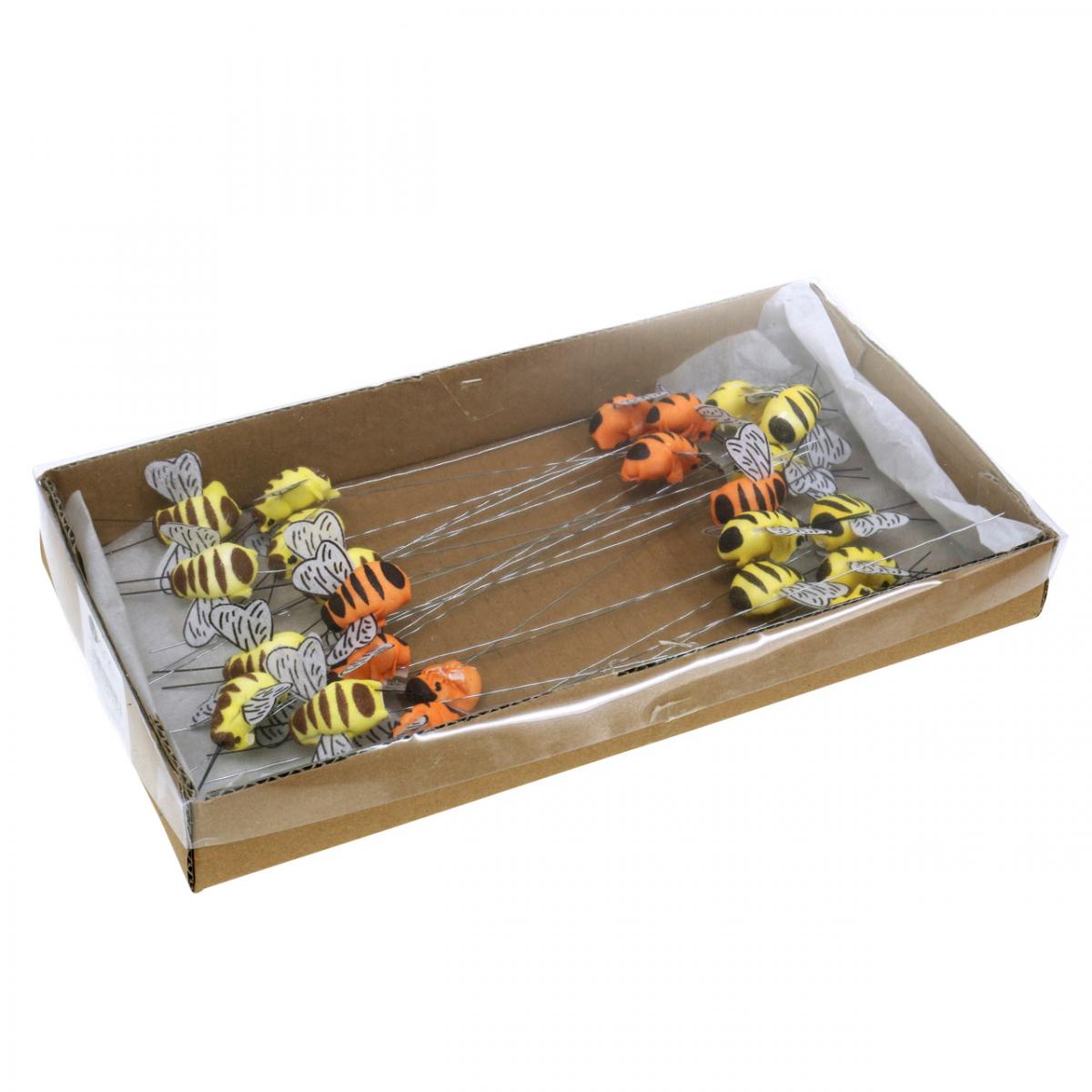Bee on wire, flower stick, decorative bees, spring orange, yellow W4.5cm 24 pcs