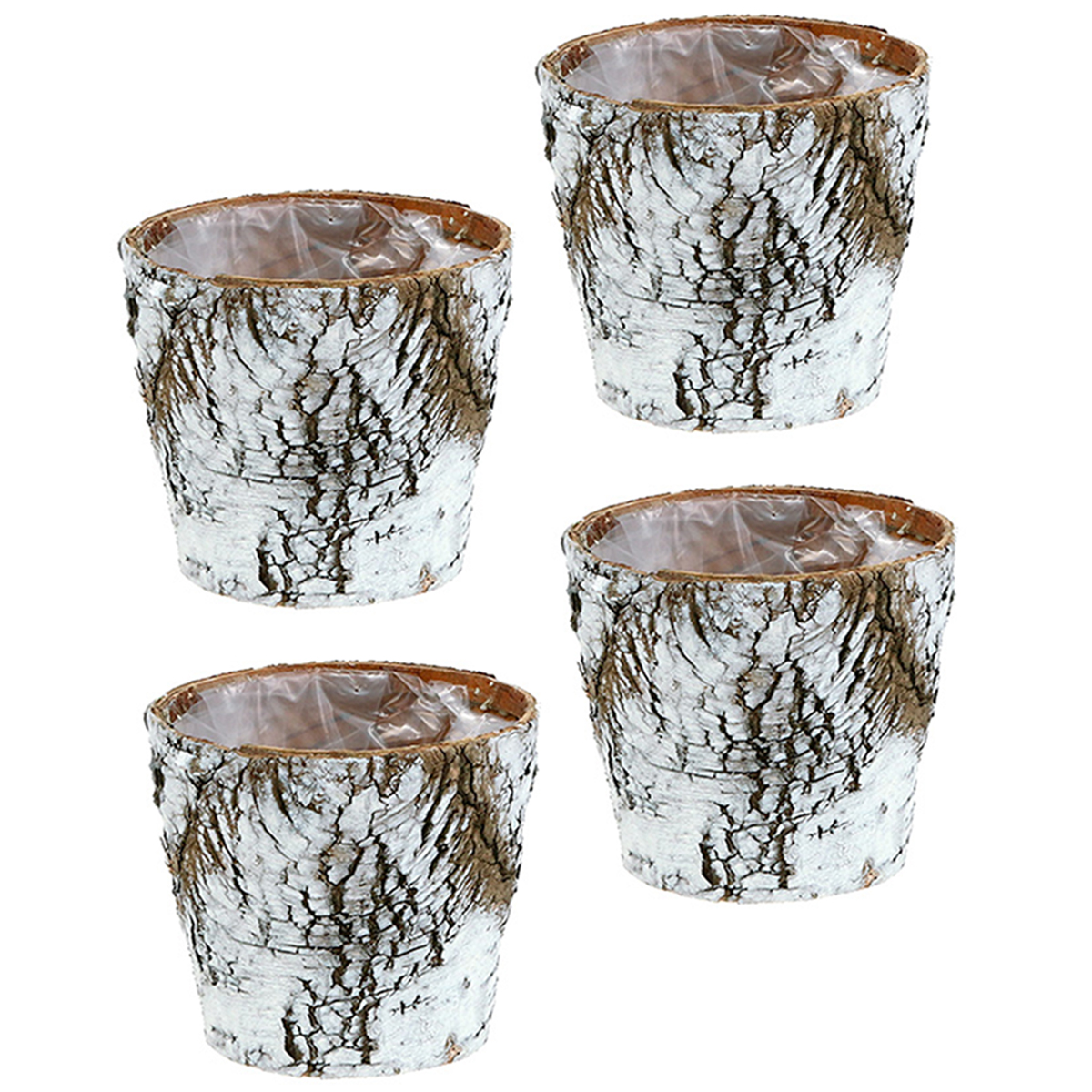 Birch pot medium plant pot birch white Ø12cm H10.5cm 4 pcs
