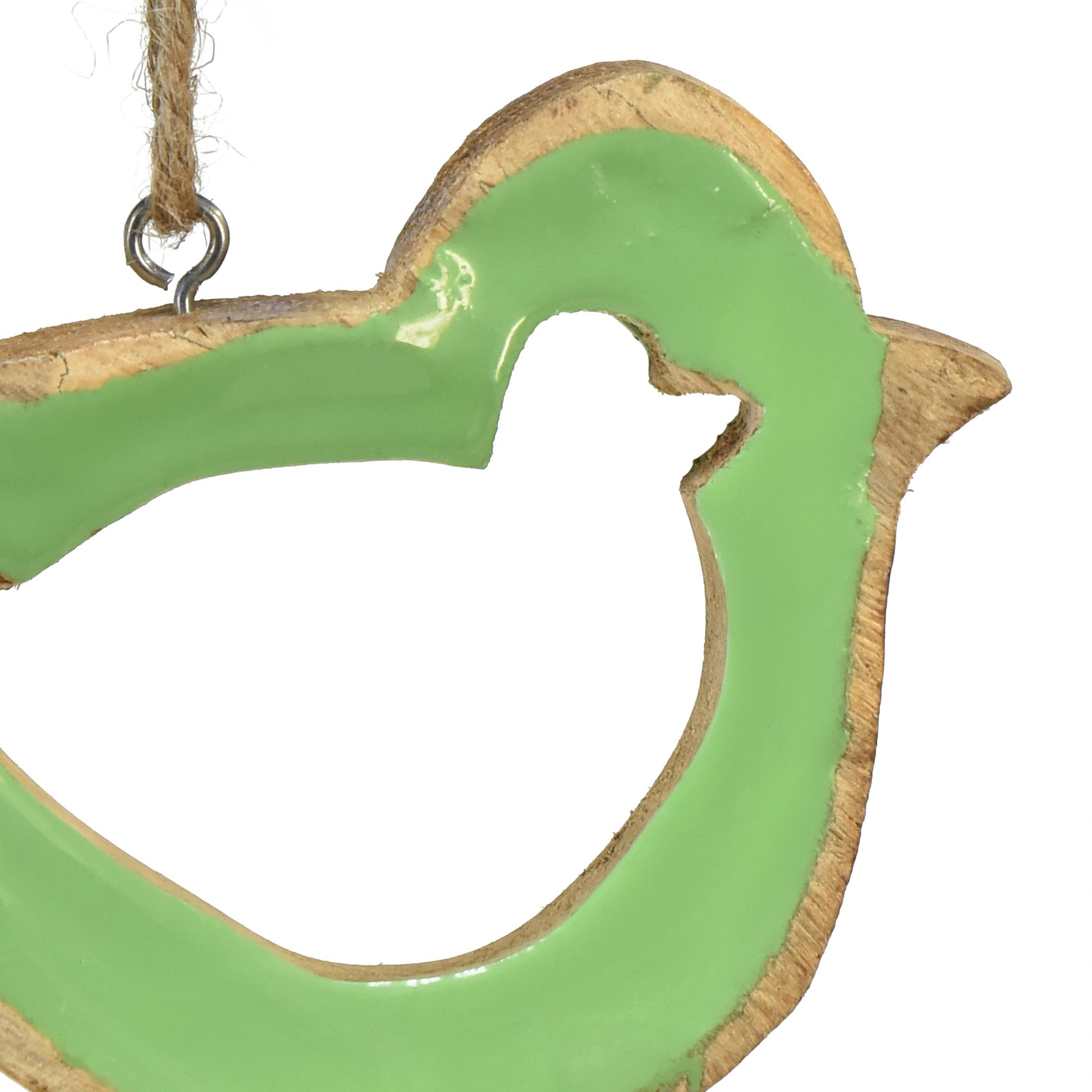 Bird decoration wooden hanging green natural 15.5x1.5x16cm