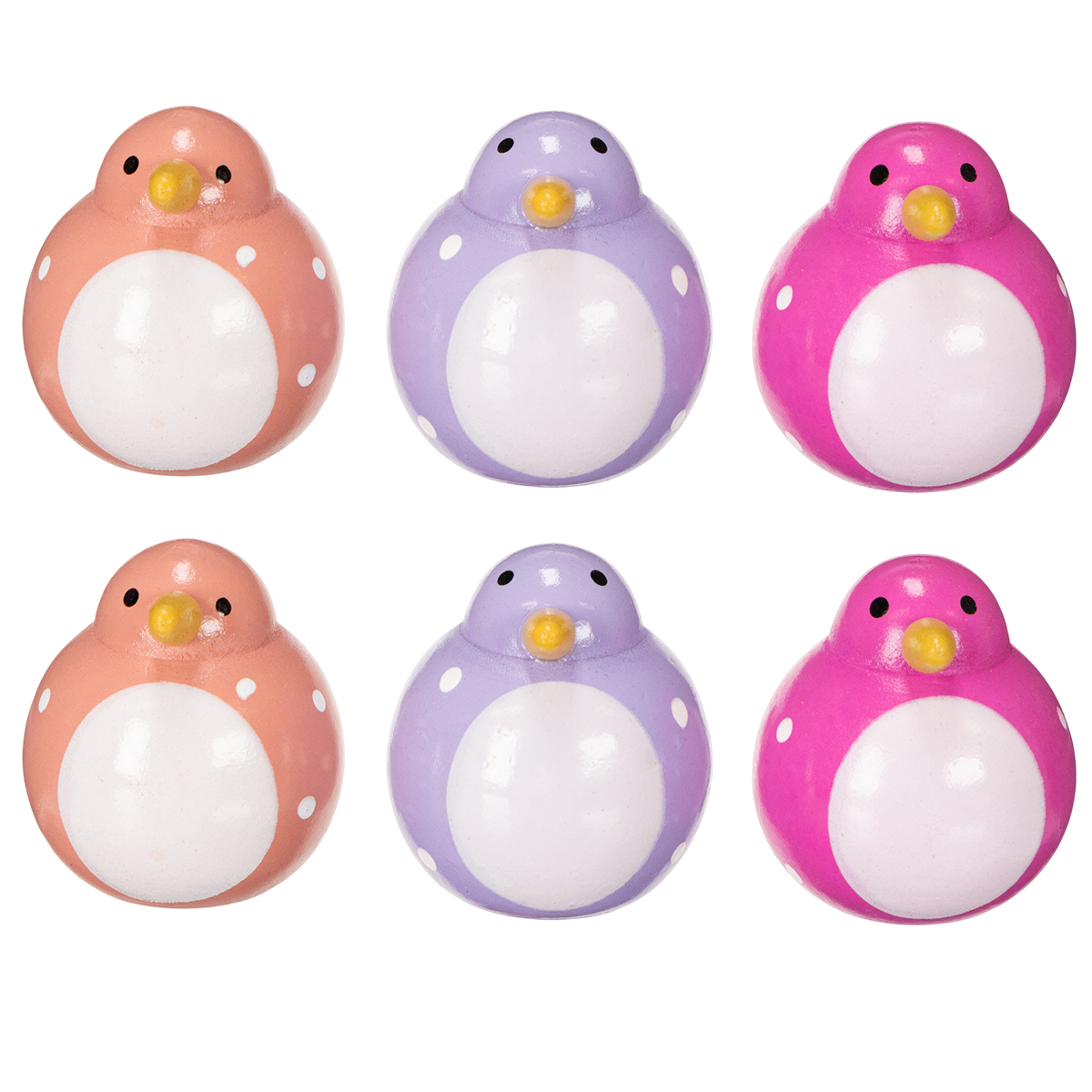 This set of six small decorative bird figurines is captivating at first glance! The figurines are lovingly crafted and assorted in three colors: purple, rose, and pink, creating a harmonious yet vibrant mix of colors. At 6 centimeters tall, they fit perfectly into any arrangement and are especially charming thanks to their adorable spotted pattern. The combination of soft purple and the bold accents of the other colors makes the birds appear both subtle and expressive.