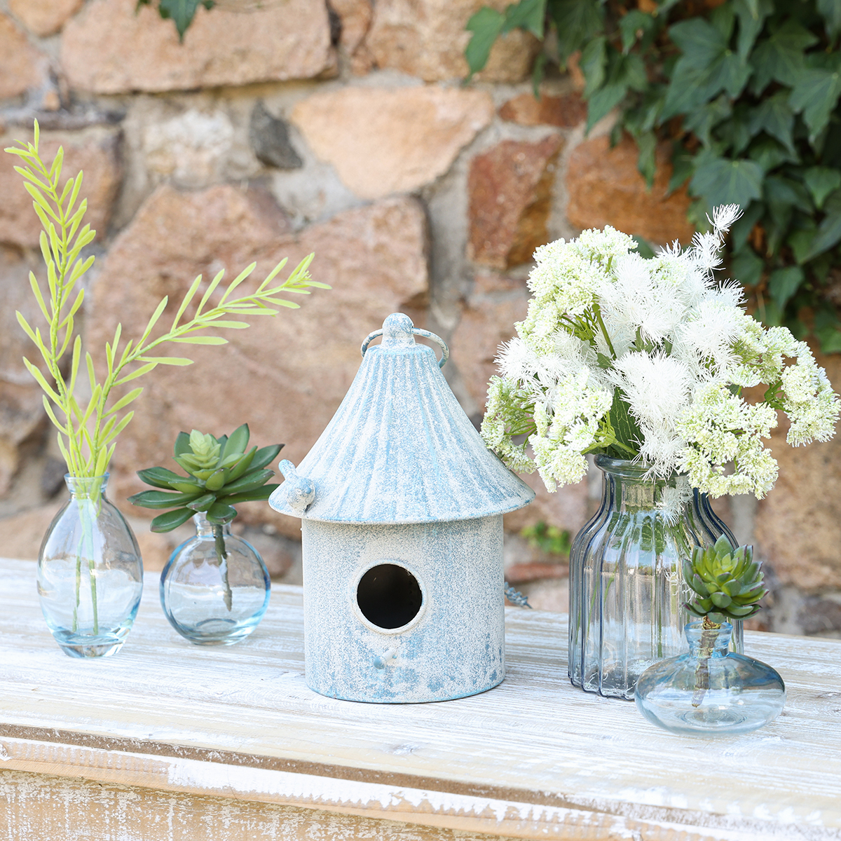 Birdhouse for hanging metal in white blue Ø15cm H21cm