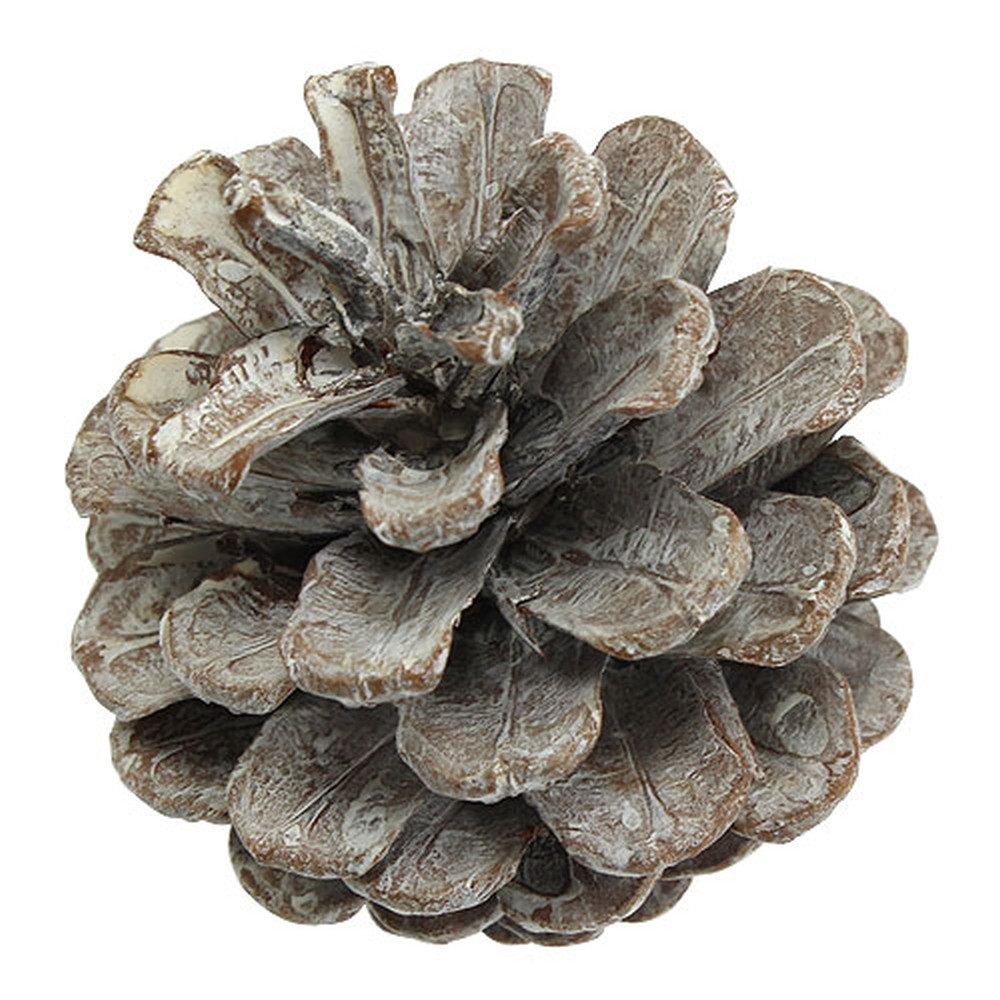 The white washed black pine cones are in a secure transport net that weighs about 1 kilogram and contains decorative cones in various sizes. The pine cones are between 5 and 9 centimeters high and have a diameter of about 6 centimeters. This means that with a little decorative snow you can also use the cones for your snow landscape in the shop window or create great effects on the Christmas tree if you attach the black pine cones to the branches of the fir tree with a wire or string.