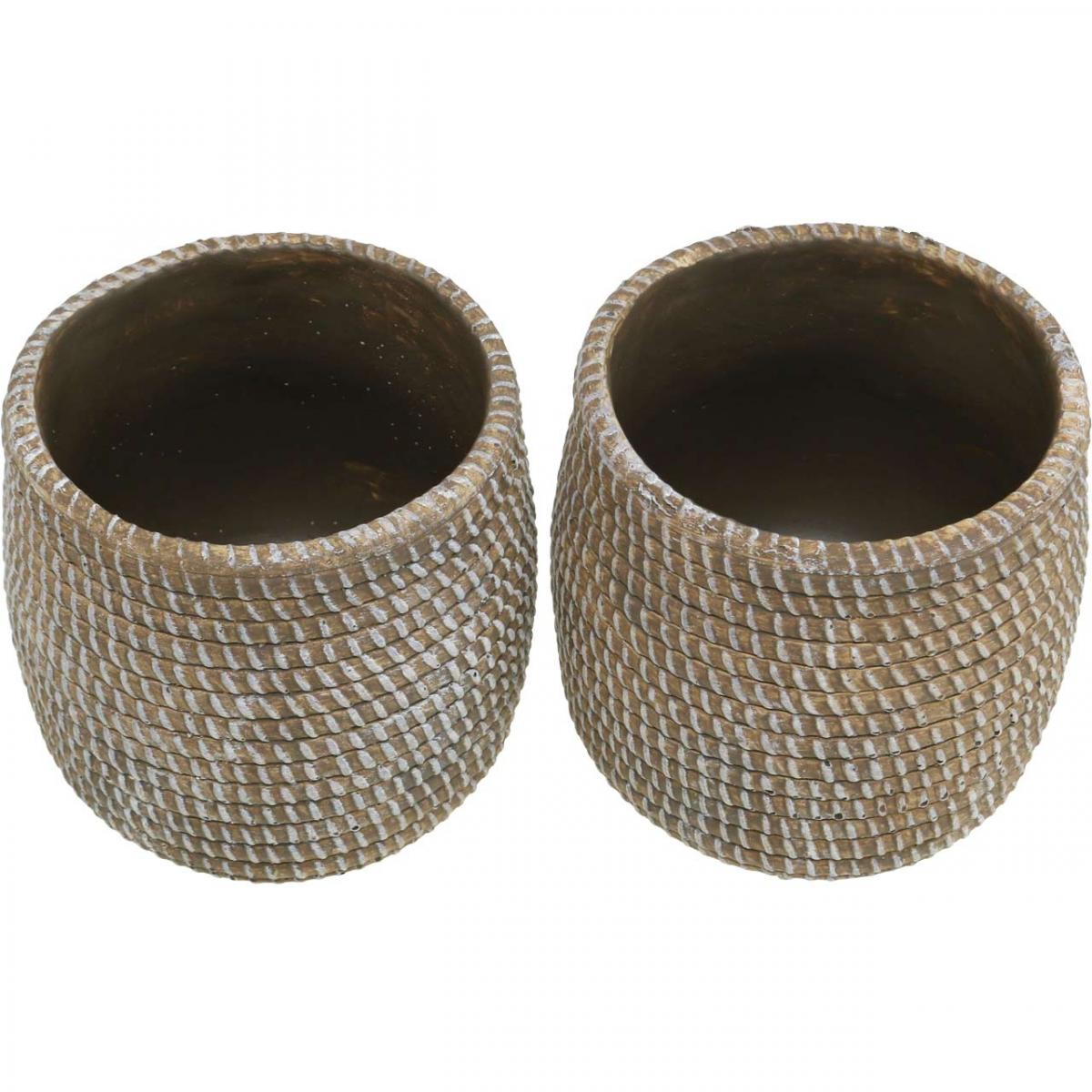 Boho flower pot cachepot ceramic braided look Ø9cm H10.5cm 2pcs