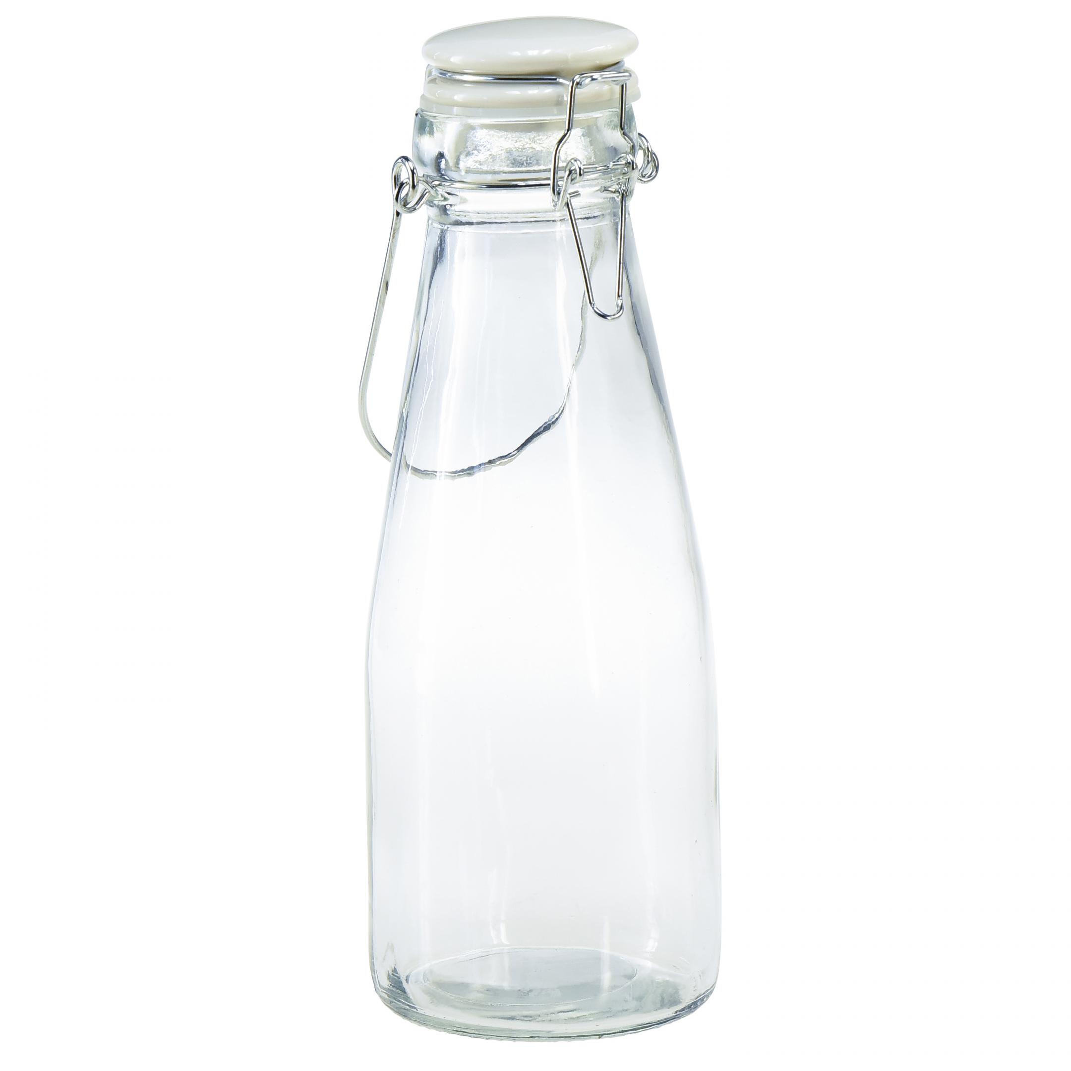 The bottle comes with a ceramic and metal cap. The bottle itself is made of glass and has a total height of approximately 24 centimeters.