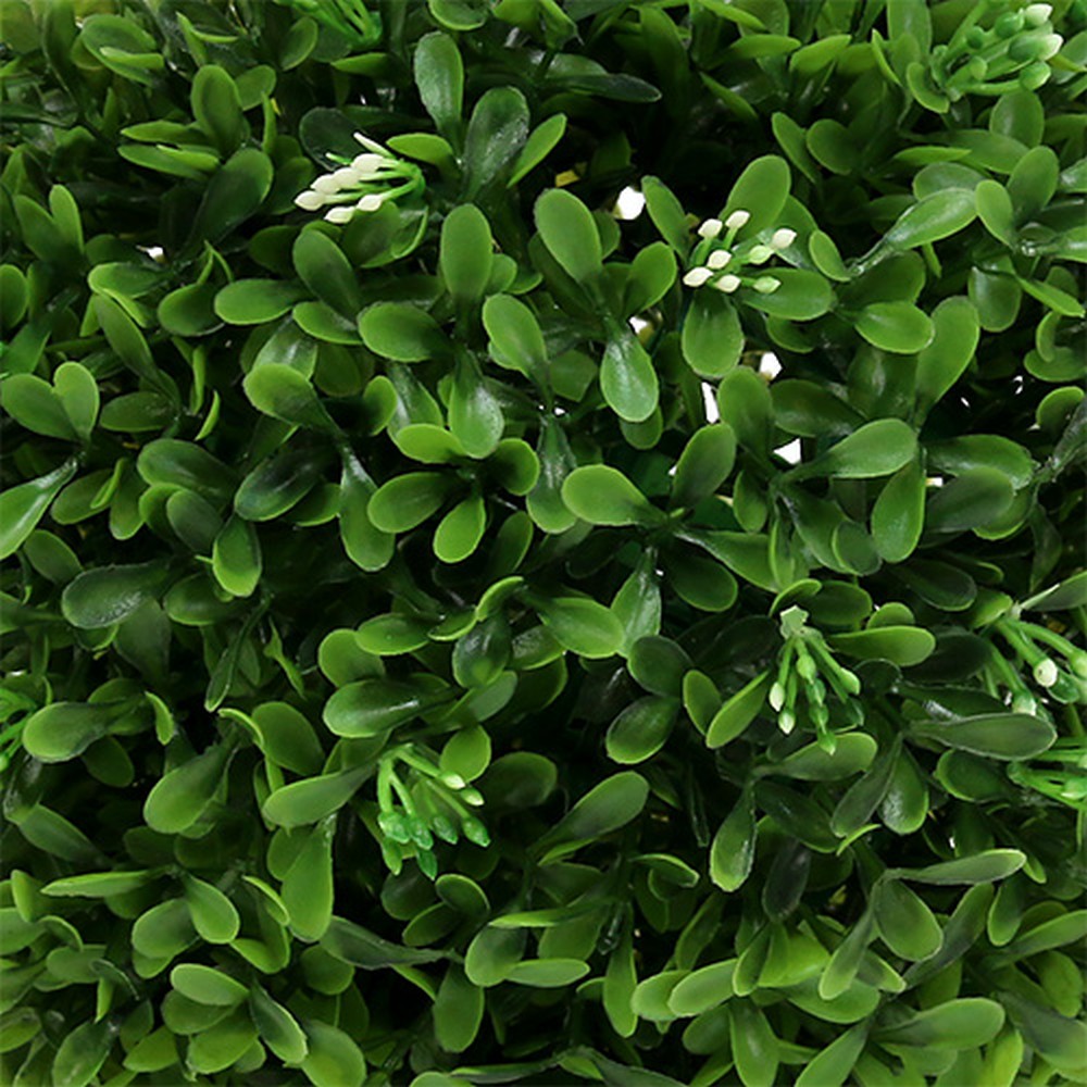 The artificial boxwood ball has a diameter of around 18 centimeters and is made of high-quality, weatherproof plastic. In addition to the lush green leaves of the artificial plant, you can always see small, closed white flowers, which literally round off the overall picture of the decorative plant.