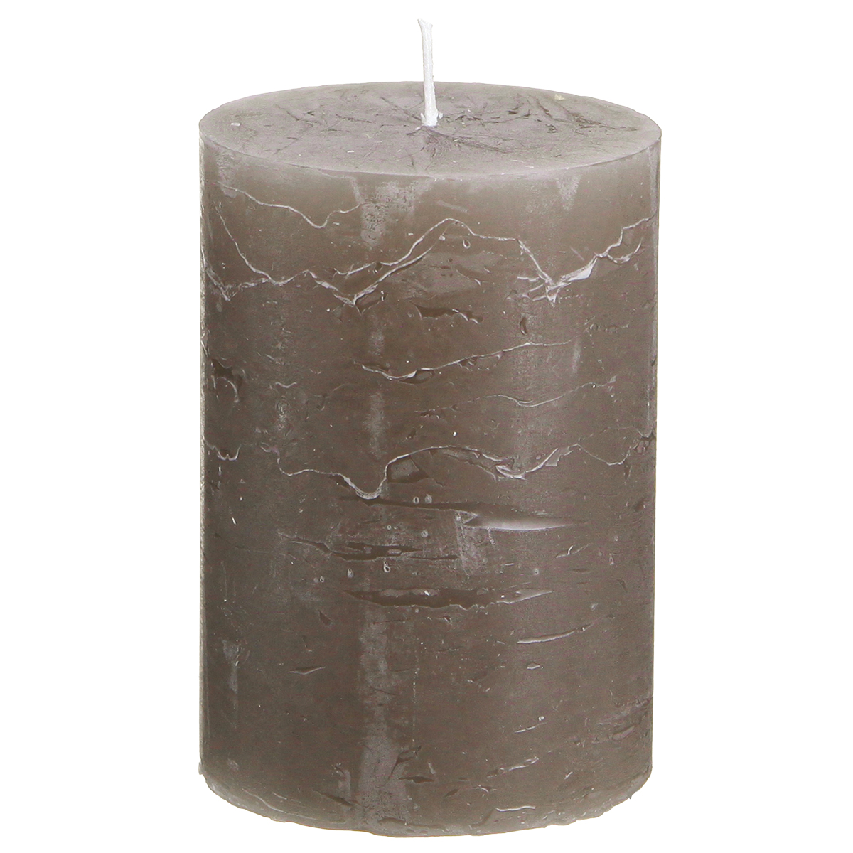 - Solid-coloured pillar candles in the warm colour Smoky Brown