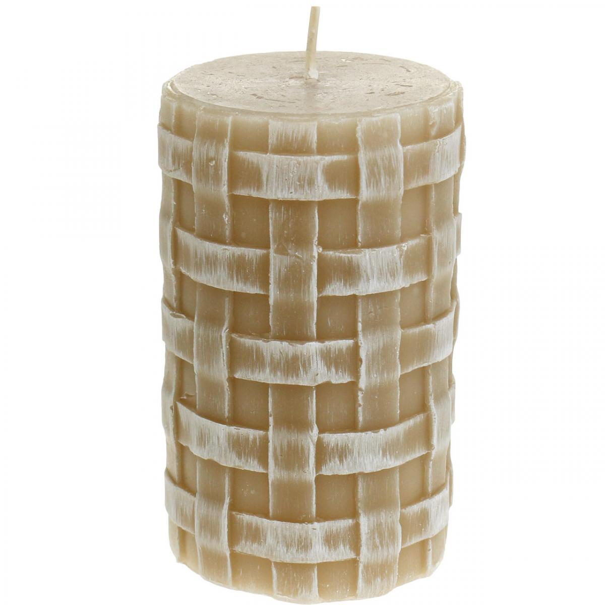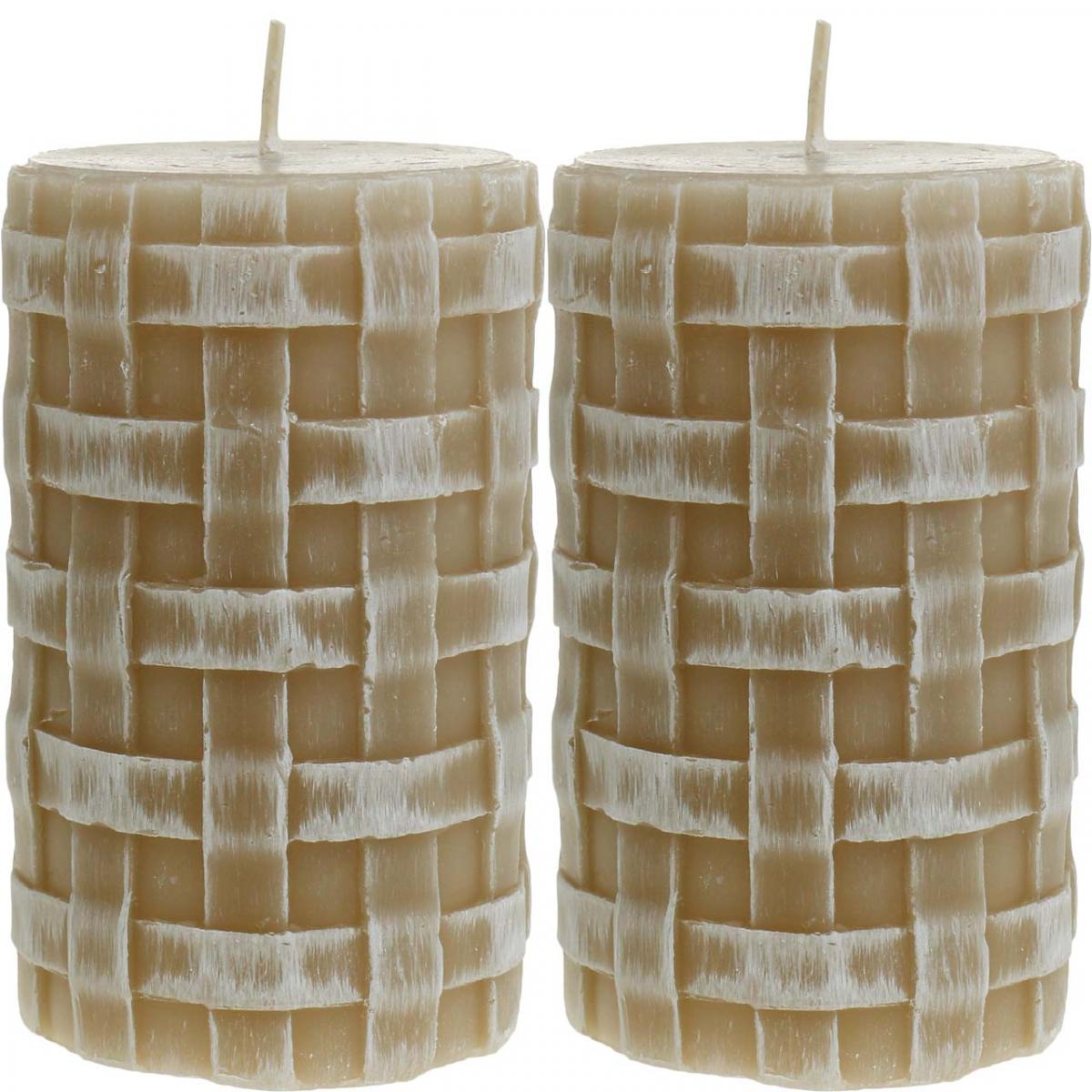 Product name: Brown pillar candles with rustic braided pattern, 110/65 mm, Safe Candle, set of 2