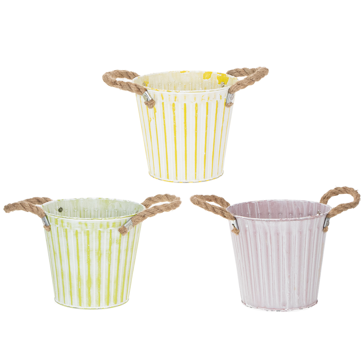 Bucket for planting, planter with handles, metal decoration pink/green/yellow shabby chic Ø16.5cm H15cm 3-piece set