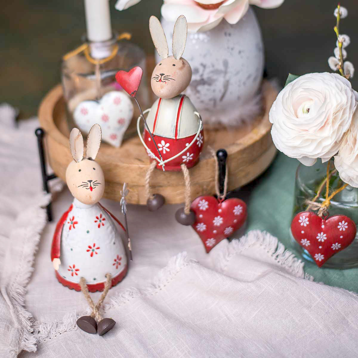 Since the rabbits are mainly red and cream, the decorative figures are ideal for the country house style. Place the bunny decoration casually on antique wooden furniture or on a natural wreath. The decorative rabbit immediately turns your spring decoration into an eye-catcher. That's why the metal bunnies are also ideal as shop window decorations for Easter.