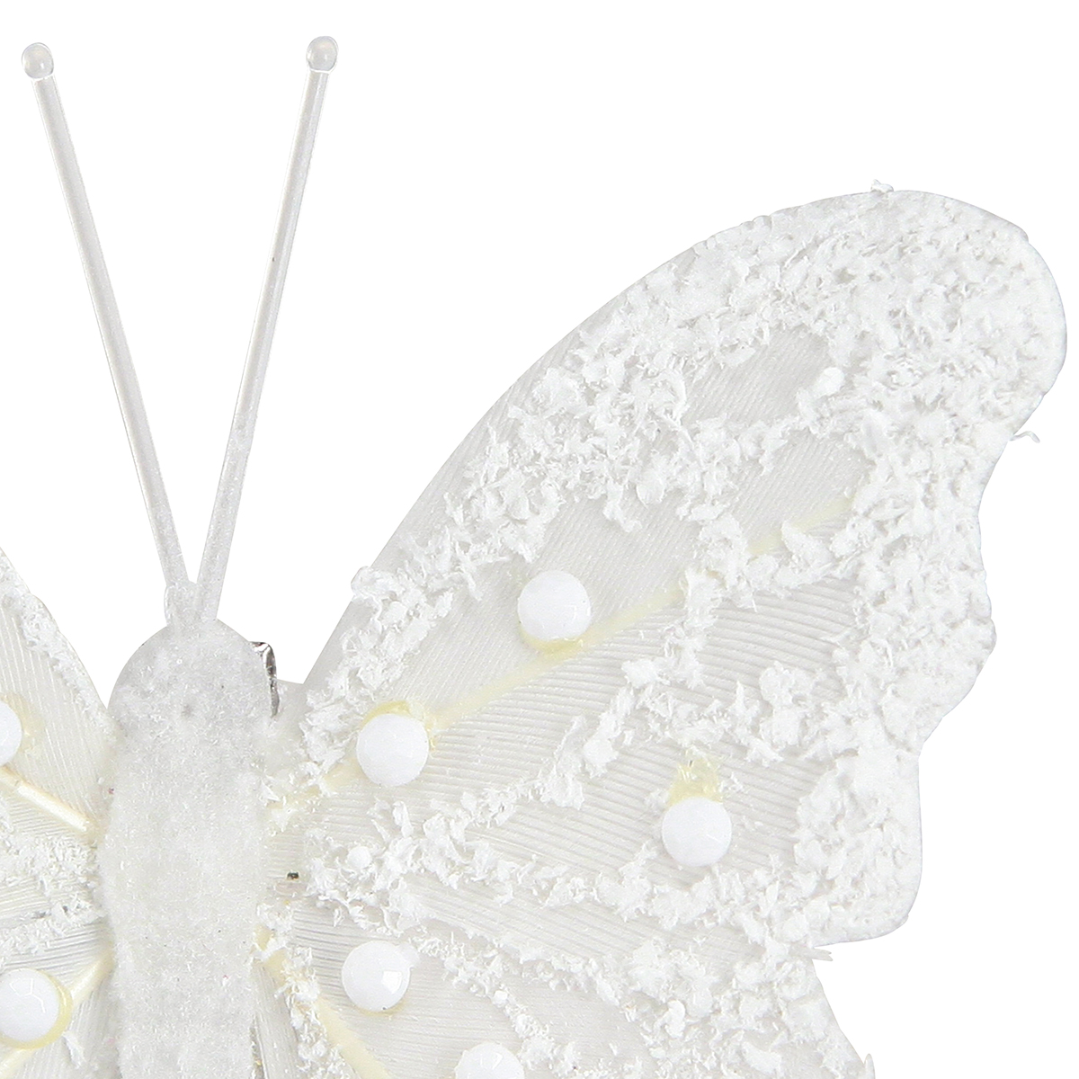 Enchant your arrangements and wreaths with this enchanting butterfly decoration on a clip in brilliant white. The delicate wings, decorated with white flakes and pearls, bring the charm of spring into your home.