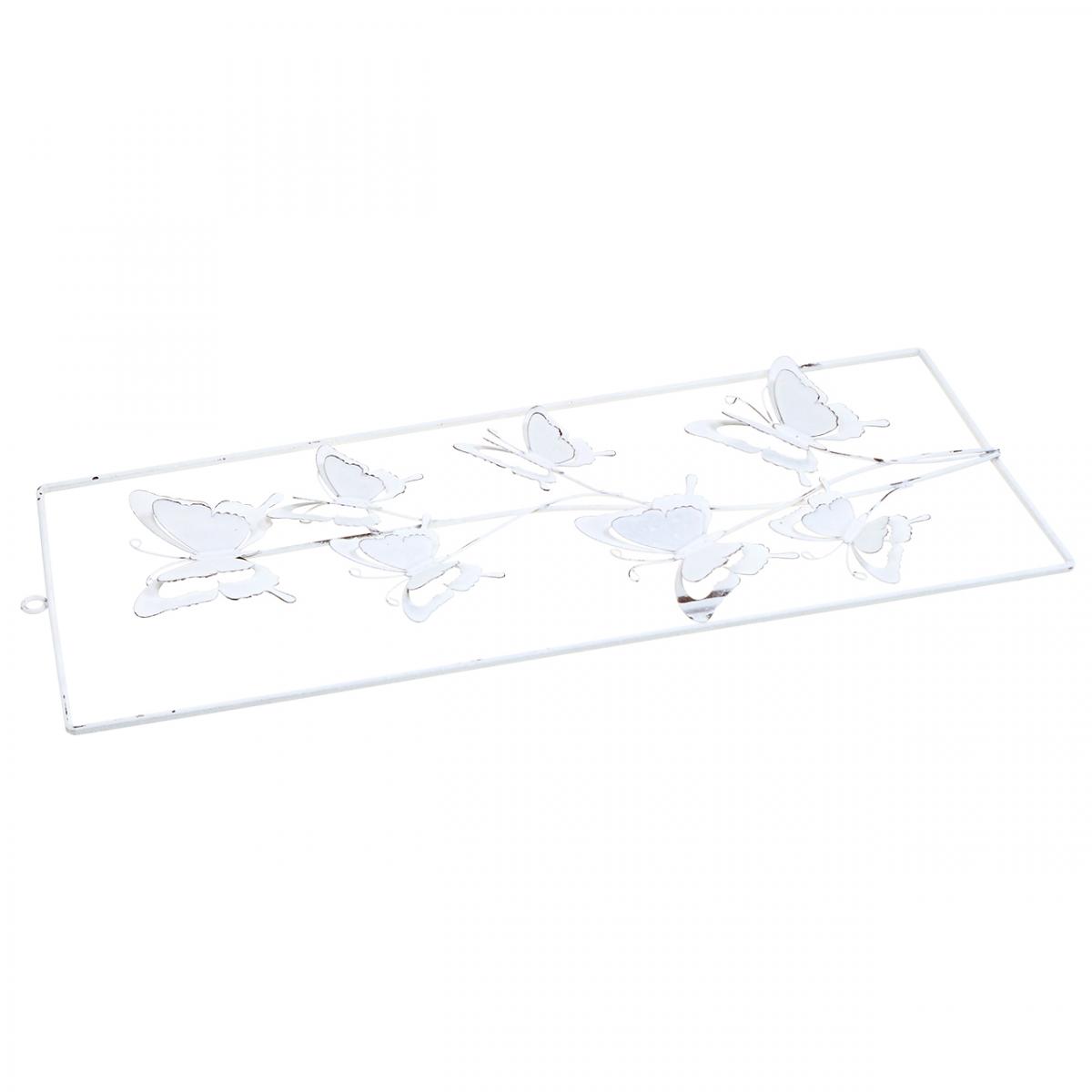 Butterfly Hanging Art Spring Metal Wall Art Shabby Chic White Silver H47.5cm