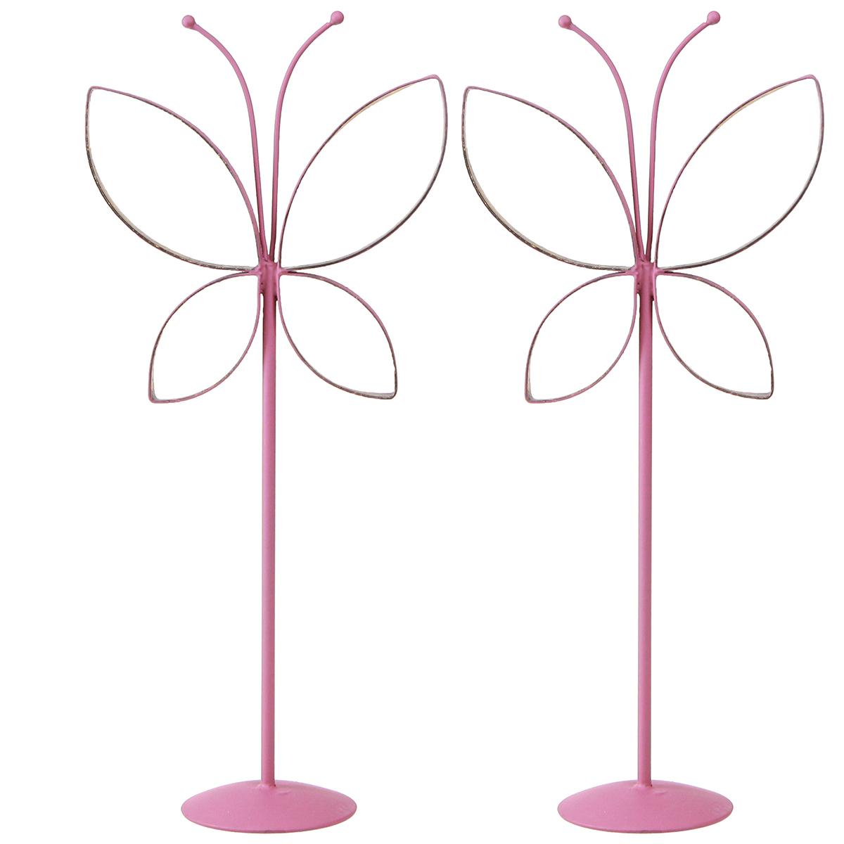 Butterfly Metal Decoration Stand Fuchsia Gold H29cm 2 Pcs
