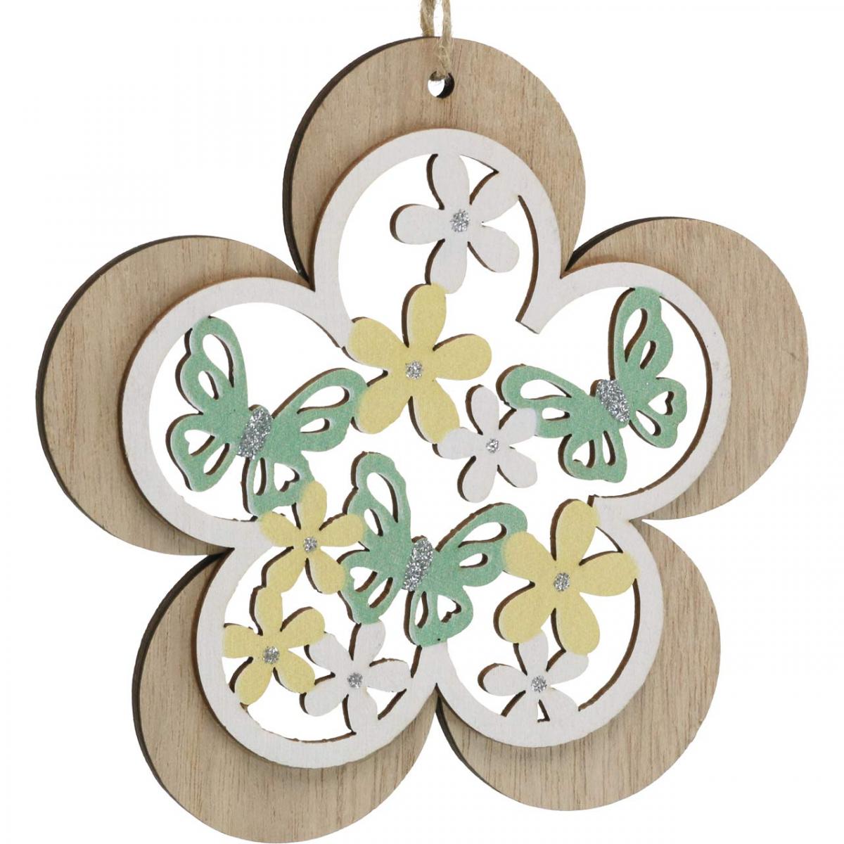 Butterfly to hang, wooden pendant flower, spring decoration with glitter H11/14.5cm 4pcs