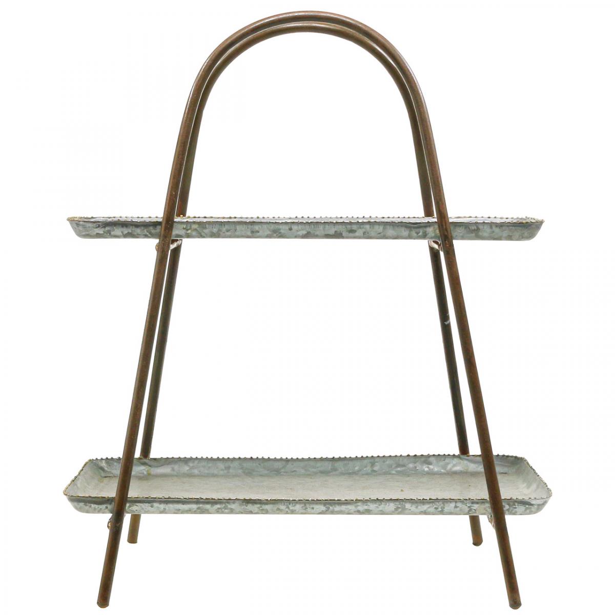 This vintage-look etagere is a two-tier decorative tray that allows you to elegantly display your potted plants. The shapely metal decoration leaves nothing to be desired, especially when it comes to decoration options.