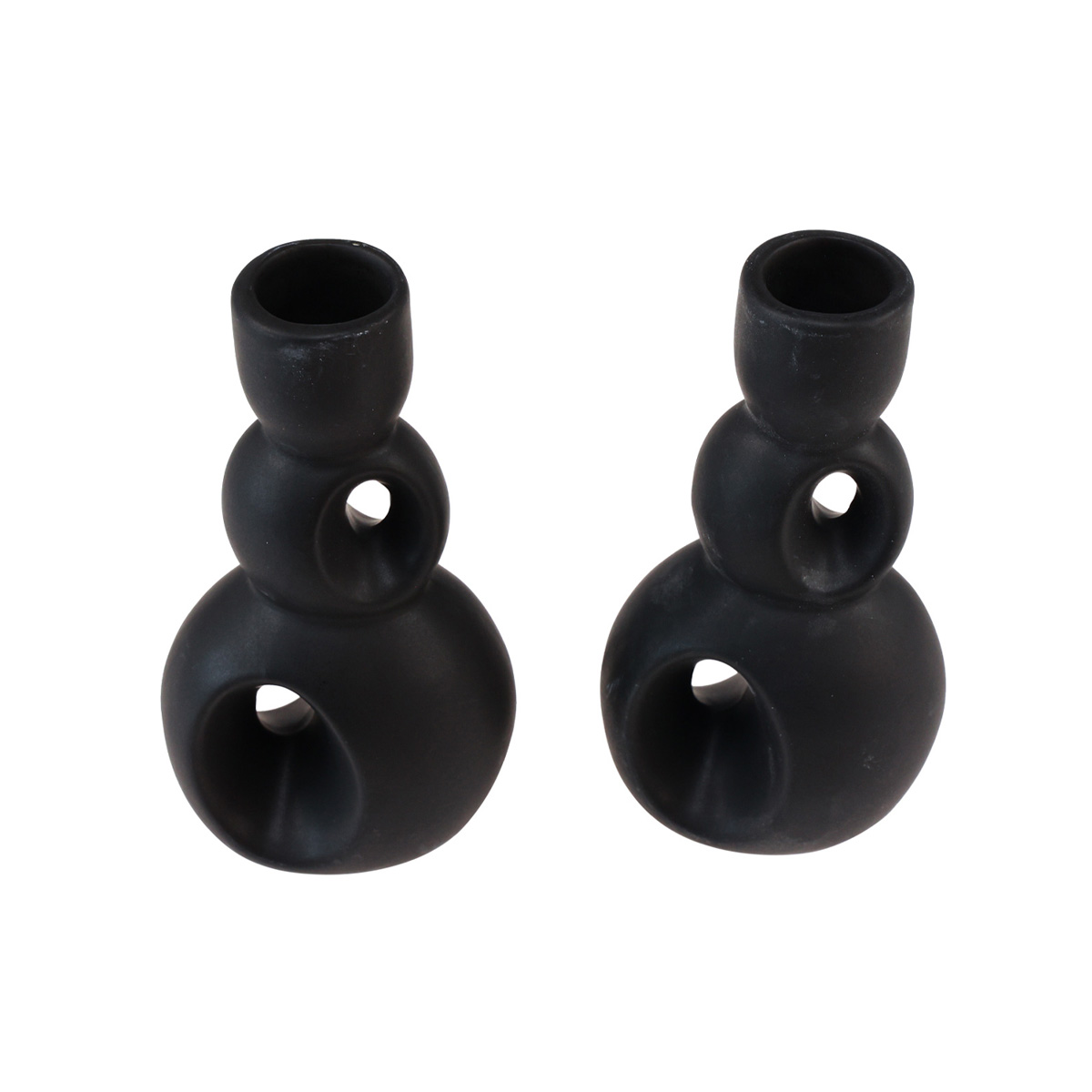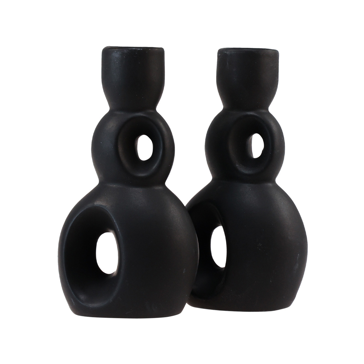 Product name: Candle Holder Ceramic Candlestick Black H13cm 2 Pcs