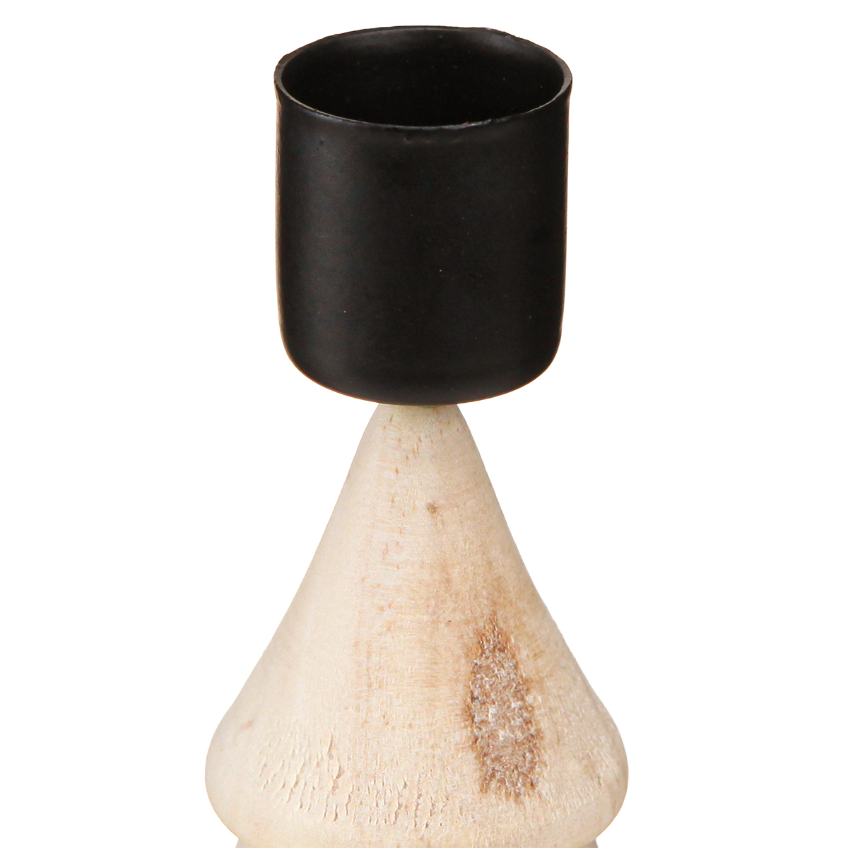 The Christmas tree-shaped candle holder made of natural wood brings a piece of nature directly into your home. These decorative candle holders are ideal for creating an atmospheric ambiance during the Christmas season. At approximately 13 cm tall, they are perfect for festive table decorations or as a cozy highlight on your mantelpiece. The design combines minimalist elegance with rustic charm, thanks to the unpainted, FSC-certified wood. A special accent is provided by the black metal candle holder on the top of the tree, which adds a modern touch. These candle holders in classic Scandi style go perfectly with all Christmas decorations and are a wonderful gift idea for your loved ones. Let the harmony of wood and metal contribute to a warm, inviting atmosphere and enjoy the contemplative time with your family and friends.