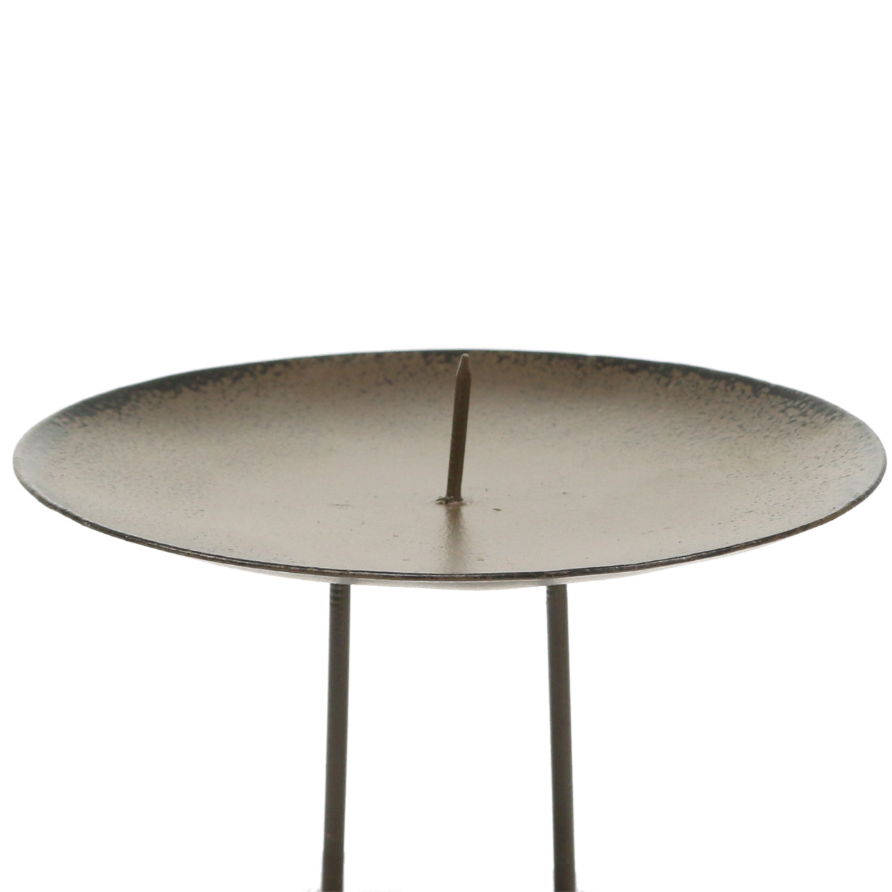 The candle holder in brown is supplied as a pack of 4 and has a total height of approximately 6 centimeters. The mandrels are about 4.5 centimeters and the candle mandrel about 1.5 centimeters long. The diameter of the drip guard is approximately 8.5 centimeters.