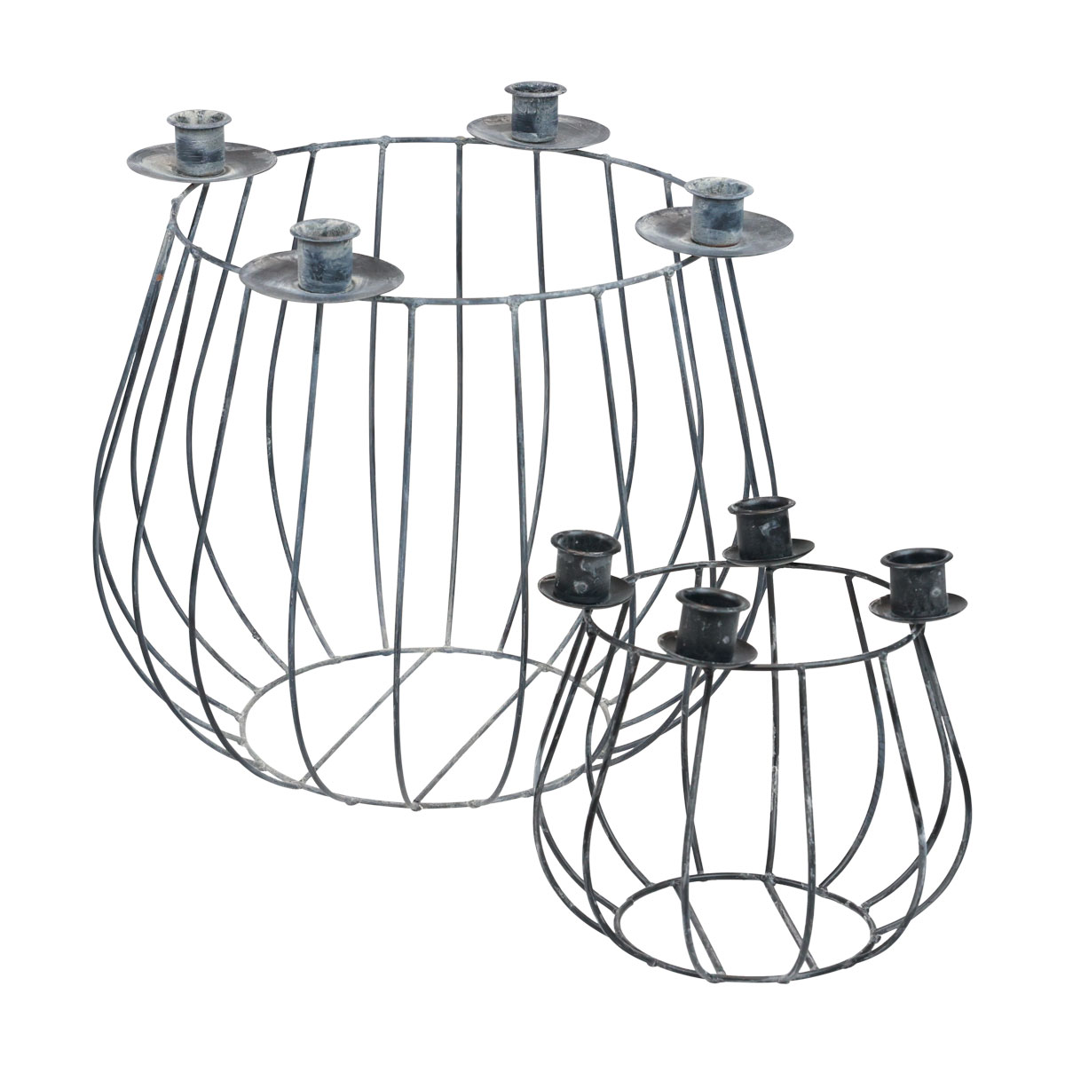 Candle holder metal grey mesh basket Ø25/10.5cm set of 2