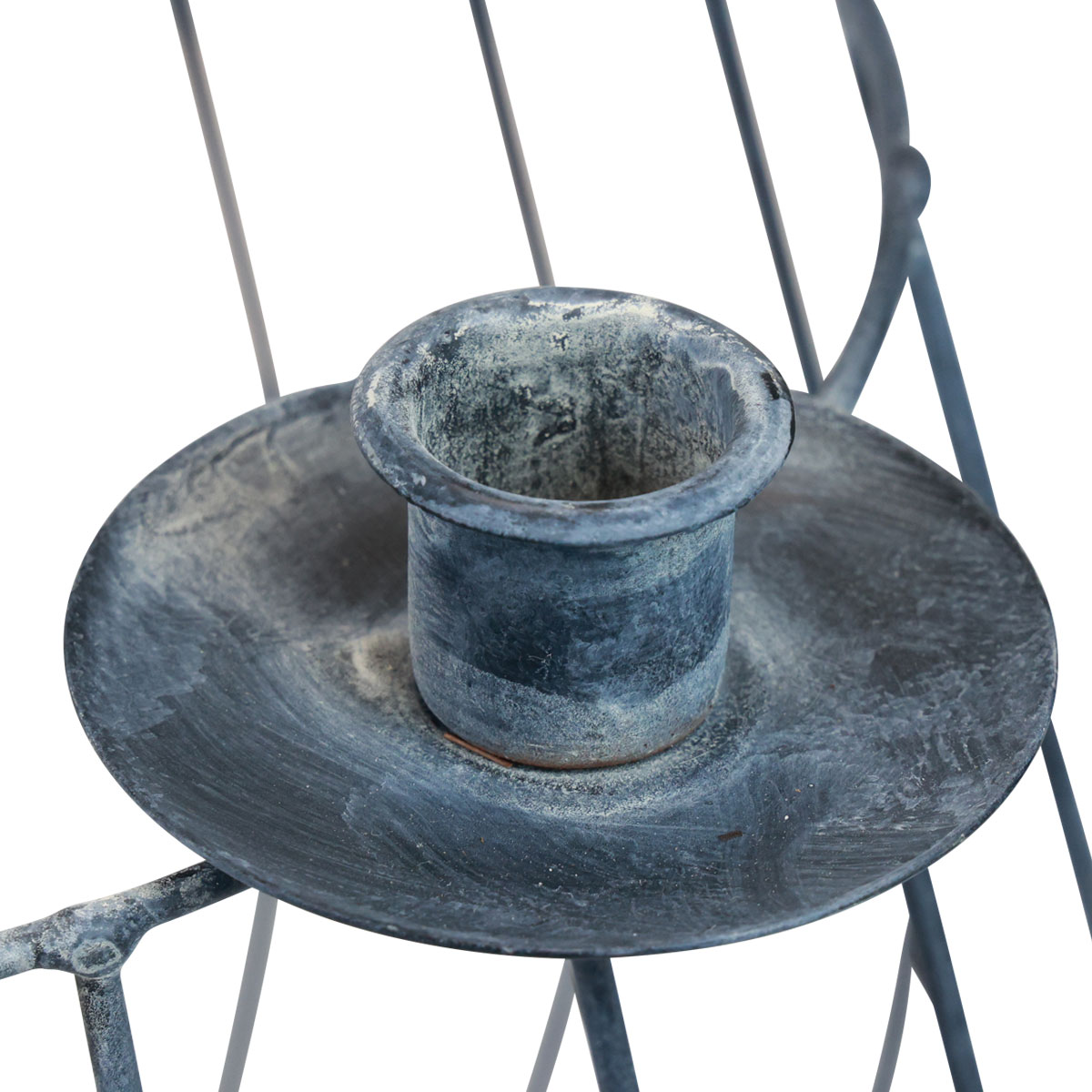 The metal candle holders in gray and lightly washed white, suitable as vintage decorations, come in a set consisting of a small and a large example.