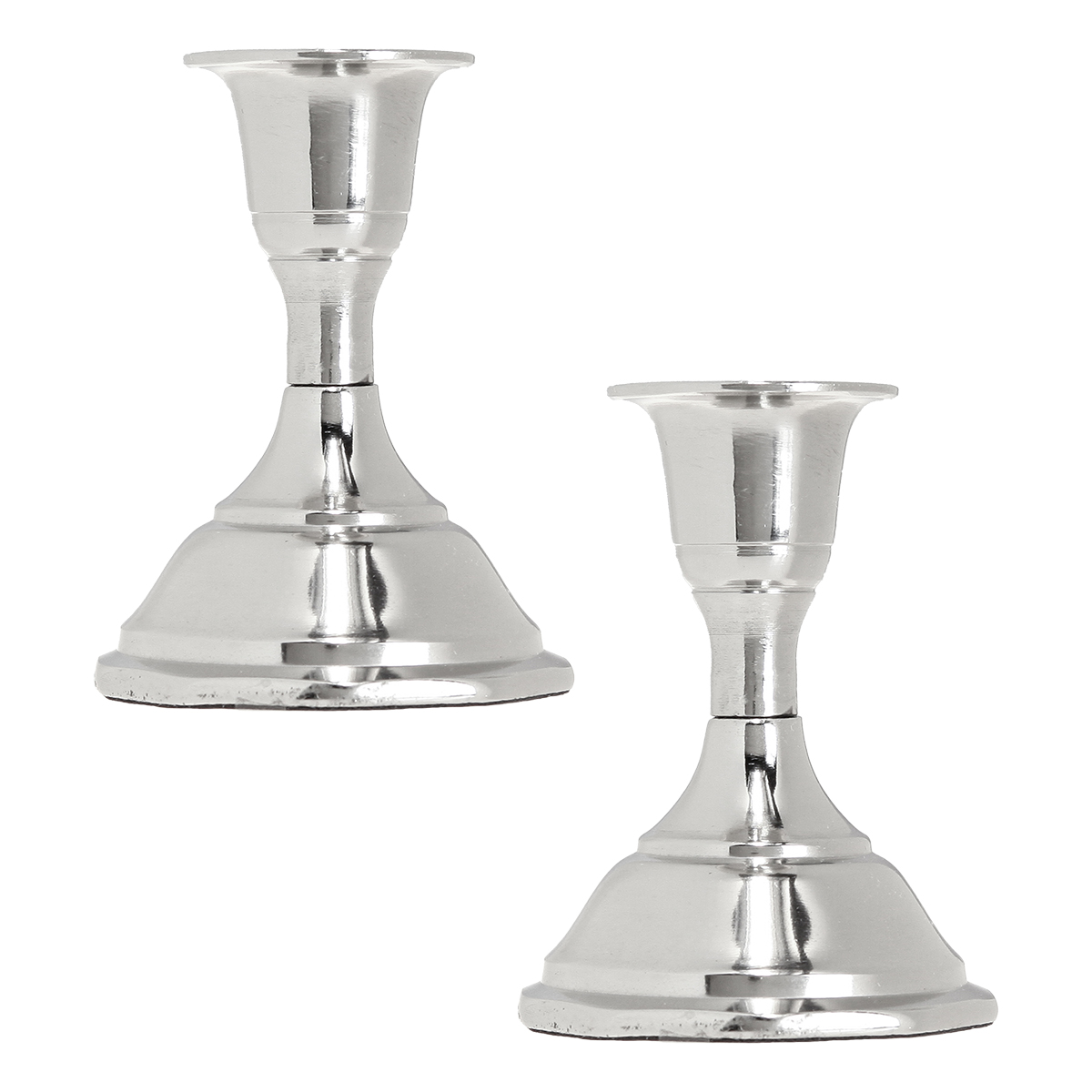 Candle holder metal silver candle holder H9.5cm 2pcs