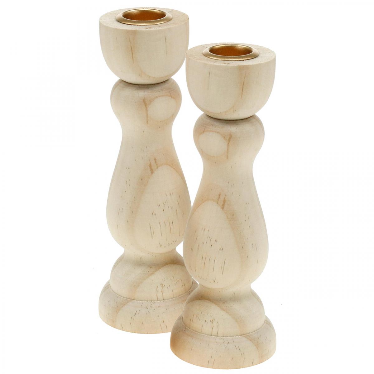 Candle holder wooden table decoration for taper candles H17cm 2 pcs