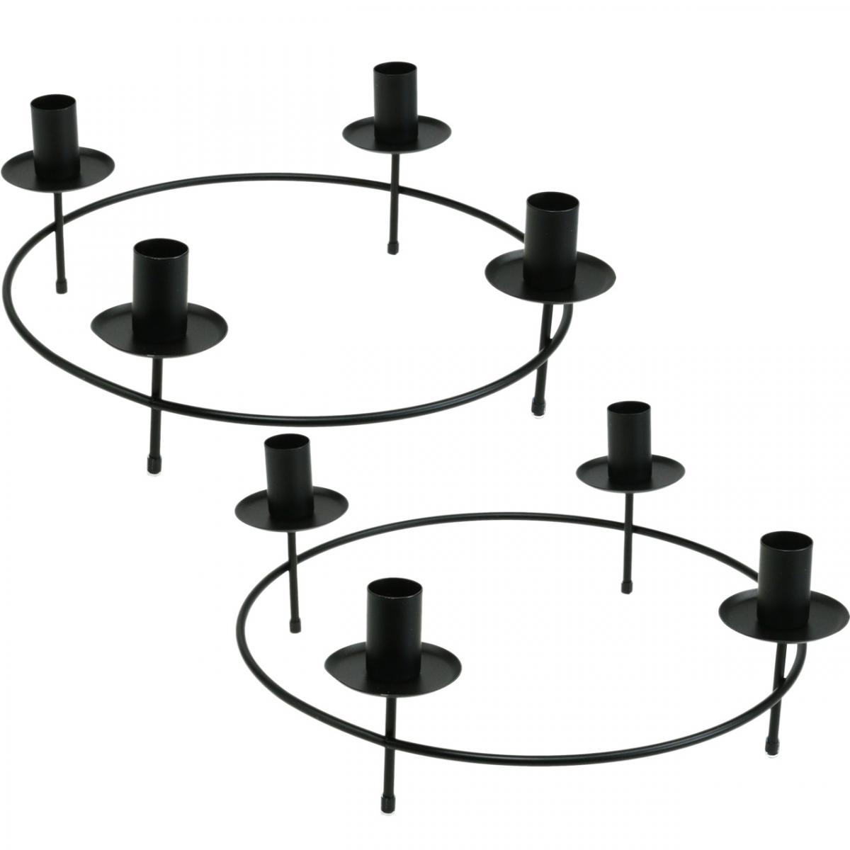 Candle Ring Taper Candles Candle Holder Black Ø33.5cm H11cm 2 pcs