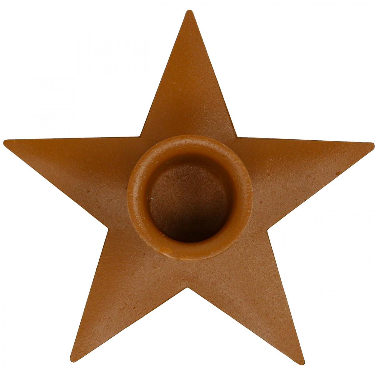 The small stick candle holders sit on a flat star and are painted rust brown. The candlesticks can be placed directly on a heat-resistant surface.