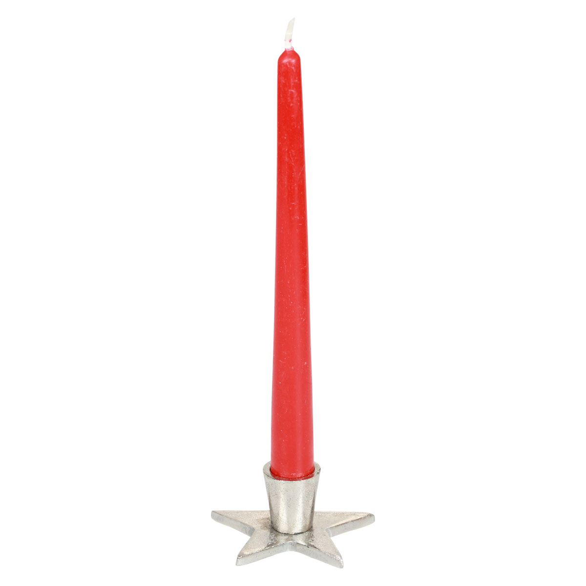 The bottom of the star ends in three short feet. The attachment for the rod candle sits on the star. The unusually rough surface and the extra strong sides make the candlestick a great antique decoration with a silver look.