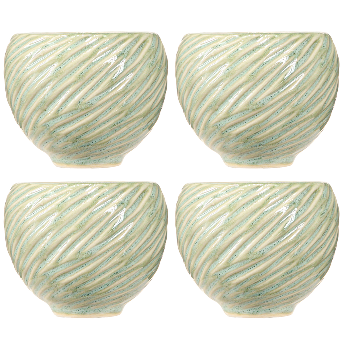 Ceramic bowls in green spiral design Ø9cm H7cm 4pcs