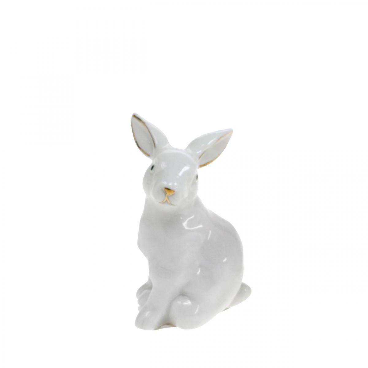 With its long ears and small stumpy tail, the ceramic figure is modeled after its natural likeness and finely decorated with golden details on the nose, mouth and ears.