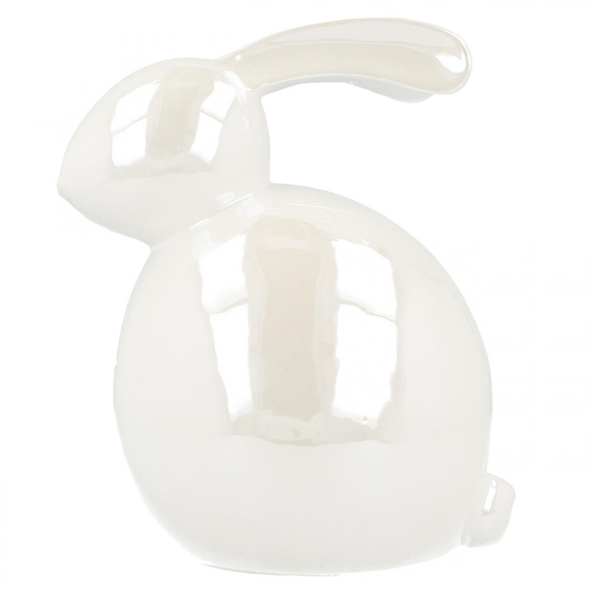 There is a touch of mother-of-pearl on the glossy white glaze of the ceramic rabbit. The spring figure radiates festive splendor and brings happiness to your table decorations at Easter with its original look!