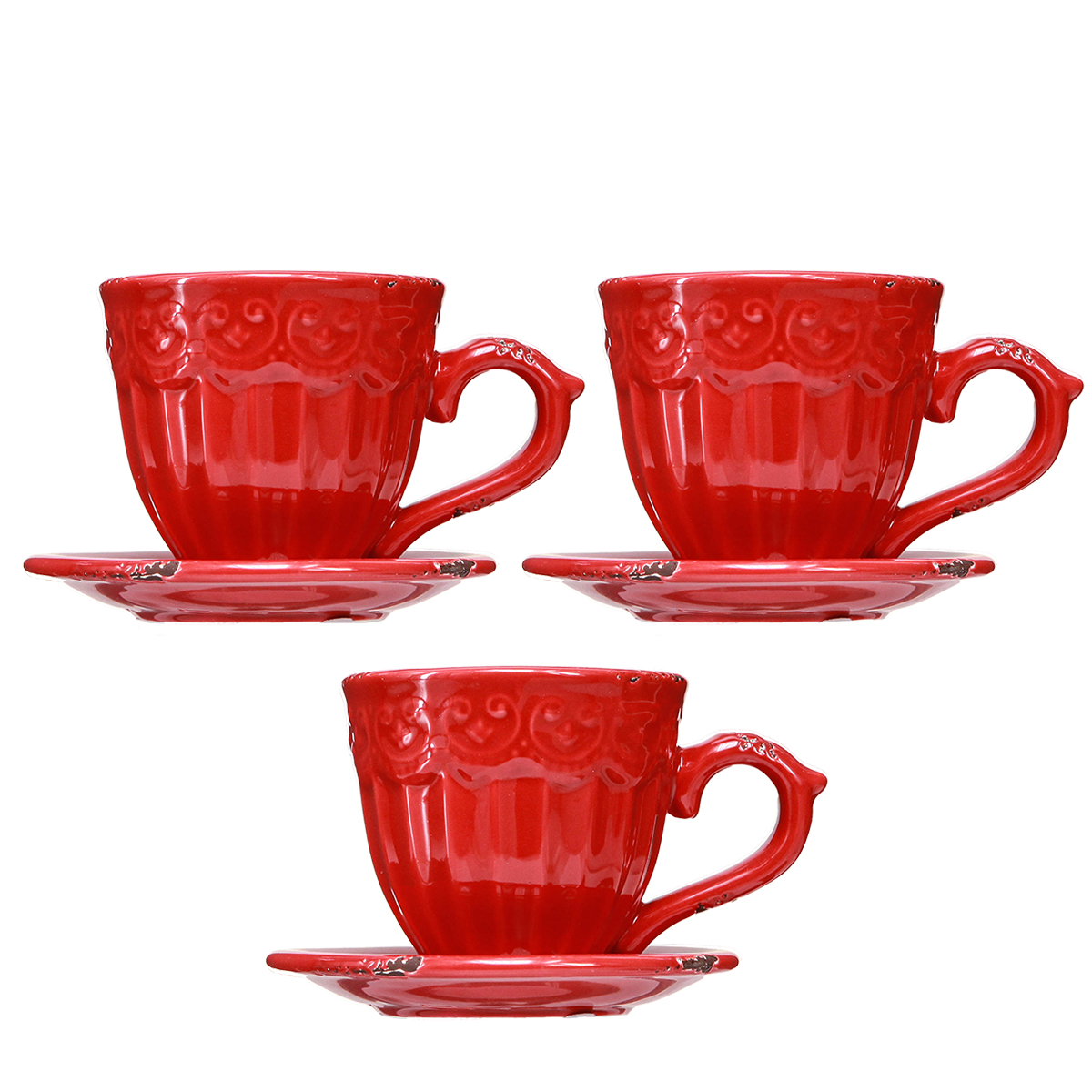 - High-quality ceramics: red glazed with rust-brown vintage accents