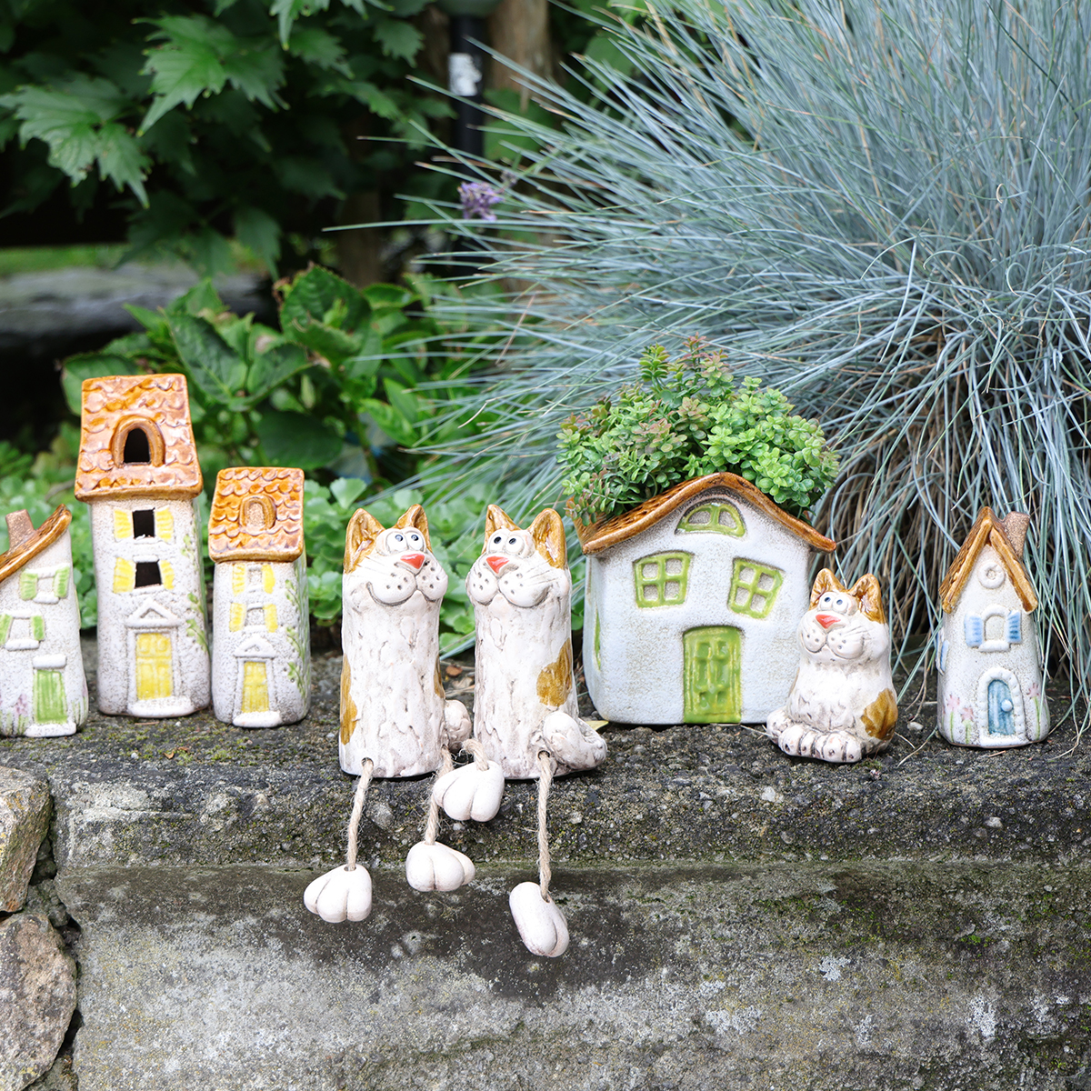 This set of decorative ceramic cat figurines is bursting with charm. Each figurine tells its own witty story – with a mischievous smile and inquisitive eyes. The handcrafted design brings the details to life, making them almost seem to have a life of their own! They are sturdily crafted and, with handy dimensions of 8 cm high, 6 cm wide, and 5 cm deep, are simply perfect for attracting attention in any room. The warm brown tones give the figurines a timeless design that complements both modern and classic interior styles. The set looks particularly striking when combined with green plants, other decorative animal figurines, or a beautifully decorated display case. Looking for a fun decoration for your dining room table or desk? These cat figurines will transform any area of your home into a charming scene. For a more creative touch, you can also incorporate the figurines into seasonal decorations: they beautifully complement winter arrangements or add playful accents to a spring centerpiece. Simply wonderful little eye-catchers for everyday life that are guaranteed to delight every visitor.