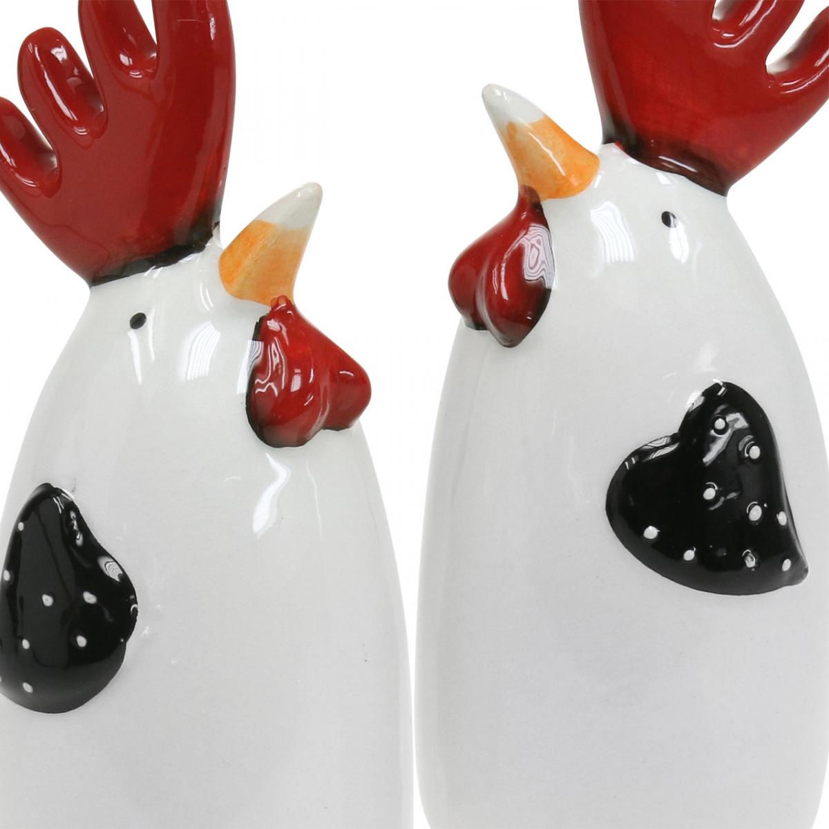 Ceramic Chicken Red White Rooster Table Decoration 7×6×15cm 2 pcs