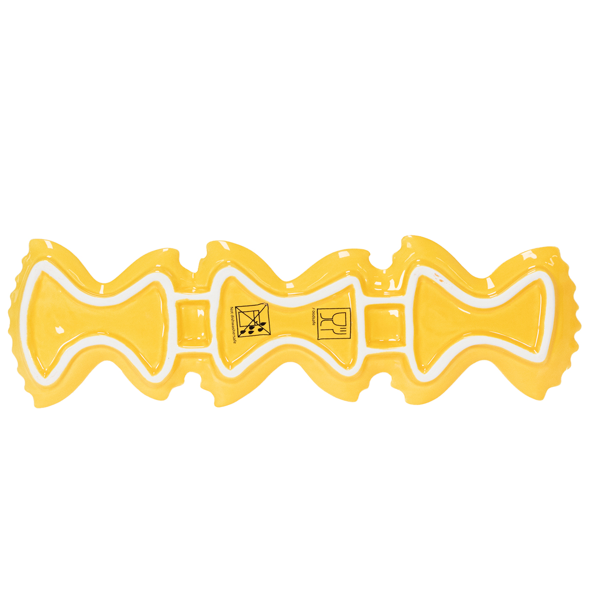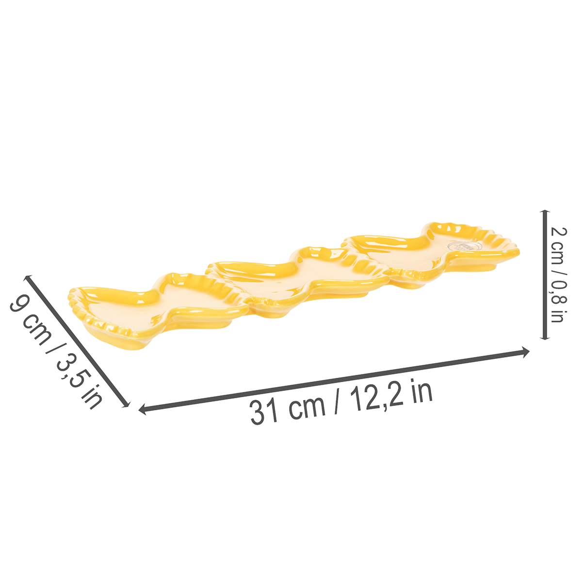 Measuring 31 cm long and 9 cm wide, this ceramic dipping dish offers ample space for your favorite small bites. The playful pasta shape of the dish lends it a charming character and makes it a real eye-catcher in any table setting. Combined with other yellow accessories, such as the pasta vases from our collection, your table will become a harmonious work of art, perfectly suited to a Mediterranean or summery style.
