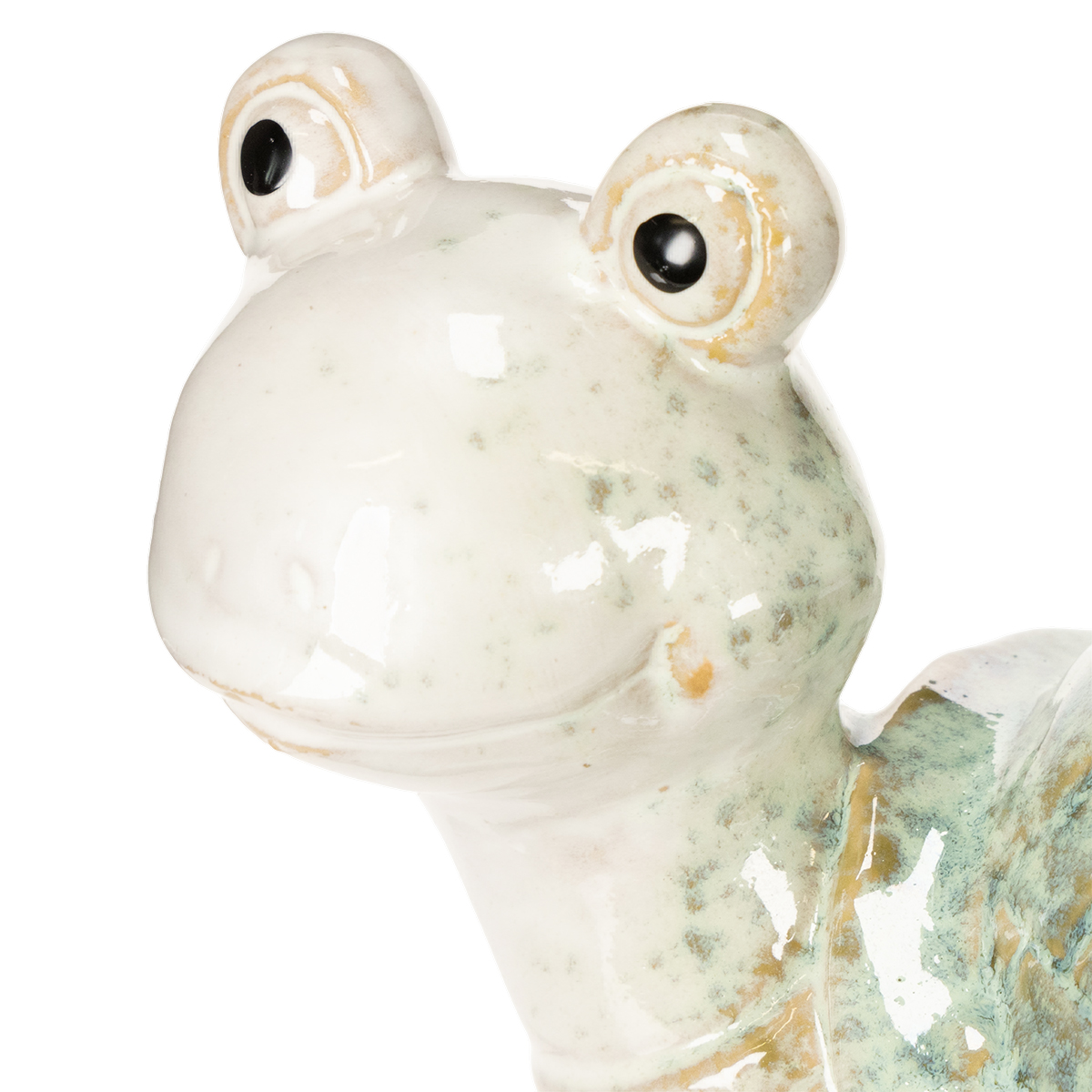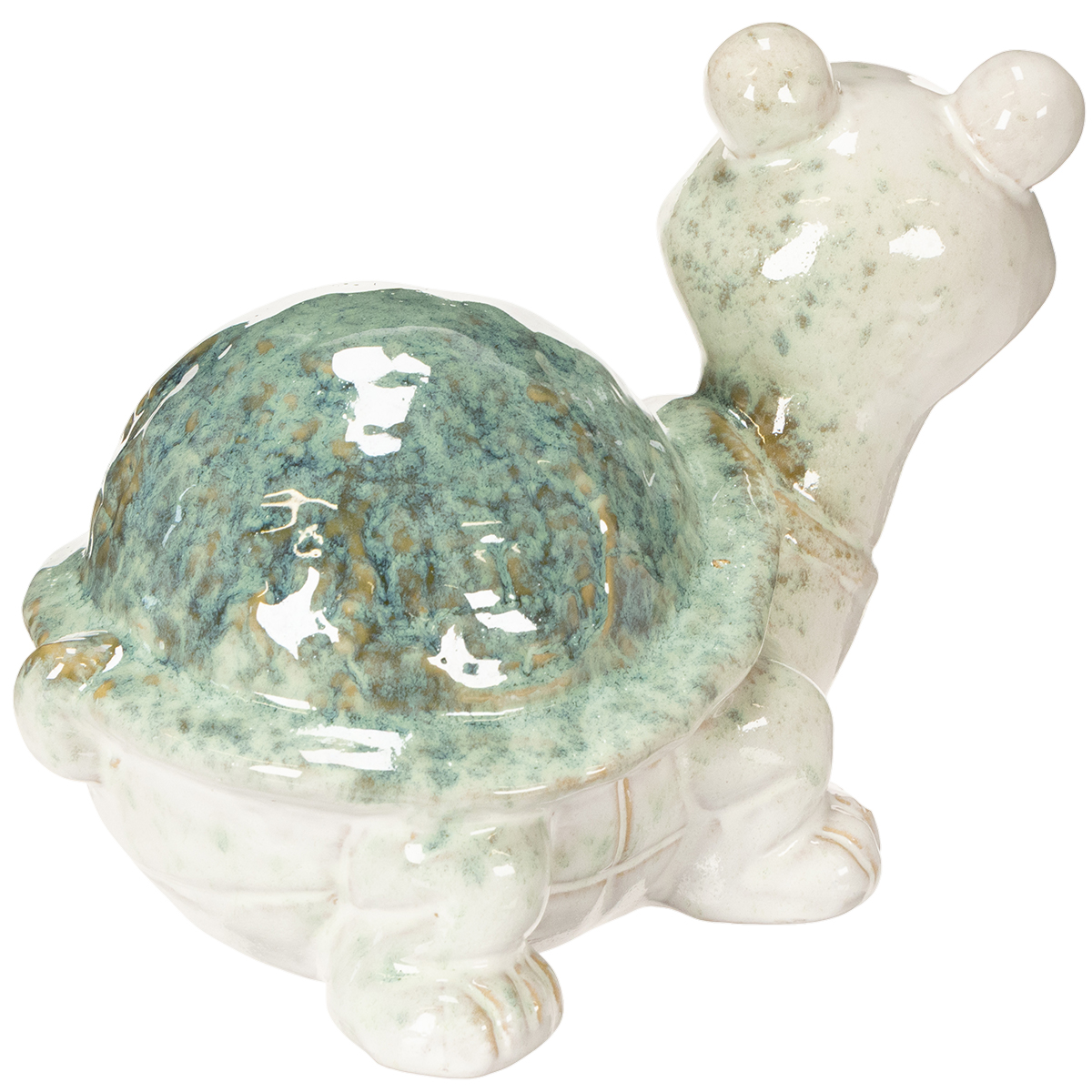 Looking for a decorative element to add personality and charm to your home? This ceramic turtle could be just what you're looking for! With its glossy green details, it's sure to be a focal point in any room. Whether on a living room shelf, a desk, or even a bathroom windowsill, it's versatile and exudes a magical sense of calm. At 22 cm long, this handy ceramic figure blends seamlessly into any decor without being overpowering. Anyone who appreciates natural style will love this figurine! The turtle symbolizes patience and perseverance. Its high-quality craftsmanship makes it a durable accessory that fits perfectly into a variety of interior design styles, from modern to boho-inspired.