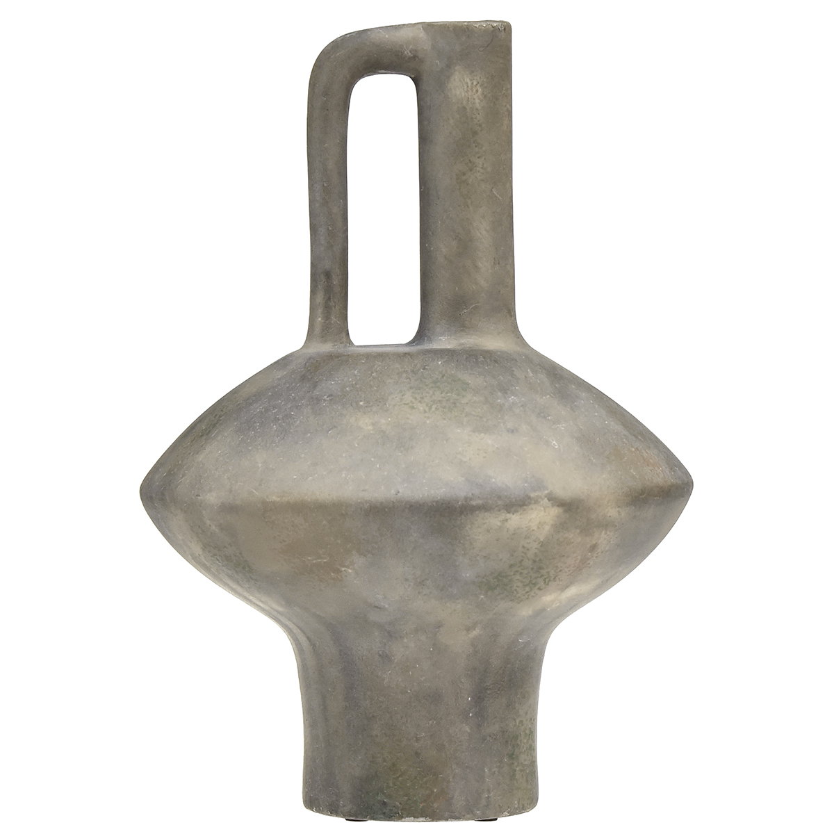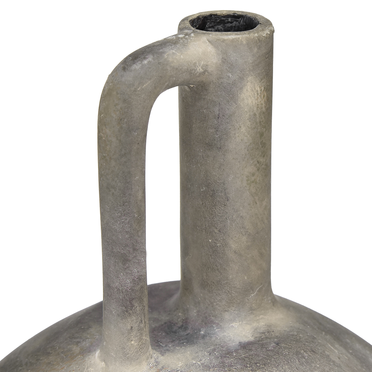Rediscover the elegance of times gone by with our exquisite antique-look ceramic vase. This decorative vase features a matte metallic tone under an artificial gray patina and is the perfect home accessory for lovers of vintage style. Its unique design with a long neck and practical handle makes this vase an absolute highlight in any room.