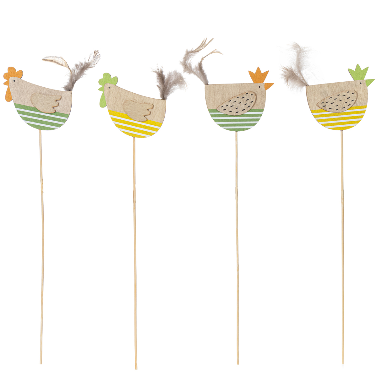 Chicken stakes in Easter design for cheerful spring decoration, 7cm, 12 pieces