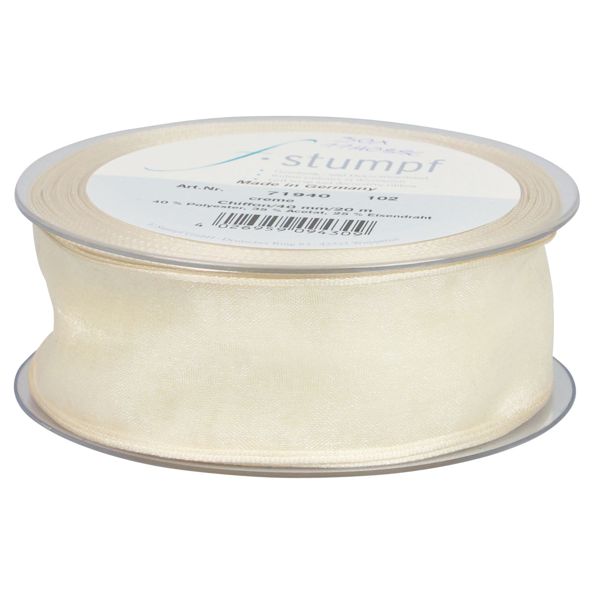 Chiffon ribbon organza ribbon decorative ribbon organza cream 40mm 20m