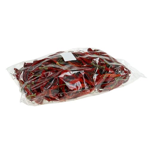 The 250 gram bag contains a lot of red and short chillies, which are about 8 centimeters long on average. The small pod from which the cayenne pepper is extracted is also suitable as a material for a flower arrangement for Thanksgiving in autumn. With some decorative vegetables, the beautiful chili is a wonderful feast for the eyes.