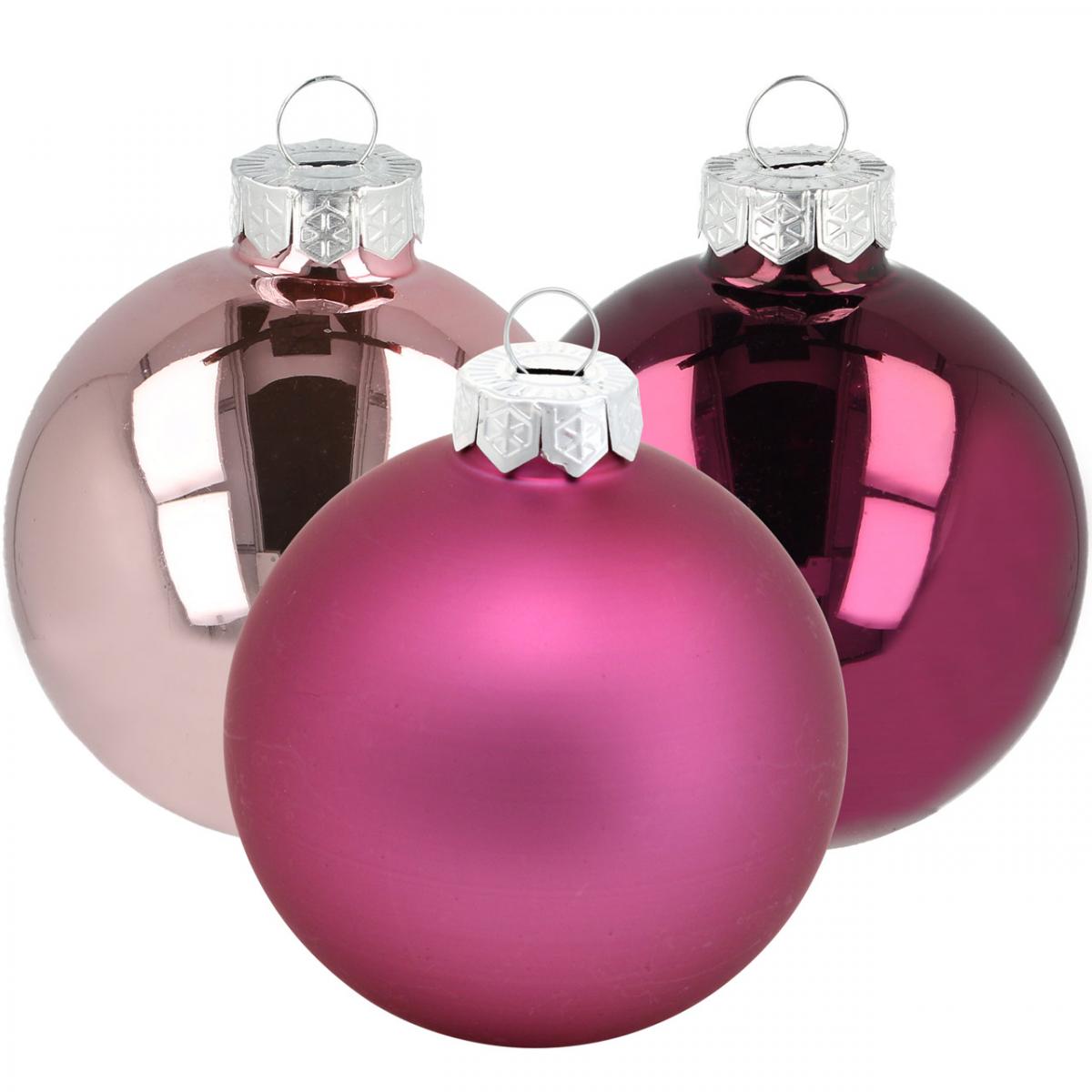 With these tree balls you get a mix of high-quality Christmas tree pendants made of real glass in three different designs: shiny glass balls in dark purple, tree pendants in matt purple and shiny balls in light purple.