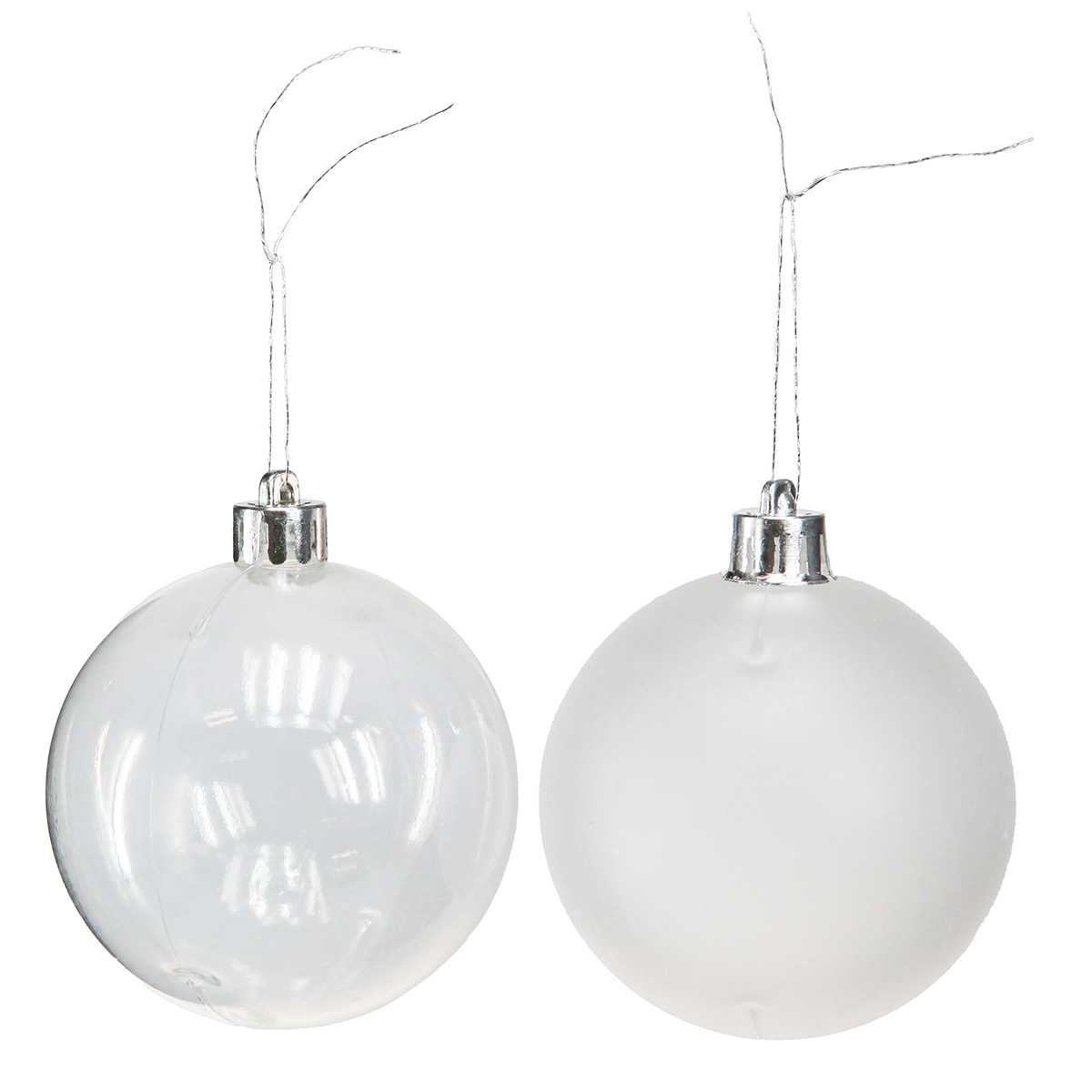 Our clear and frosted plastic Christmas baubles are the perfect choice for anyone seeking modern and stylish Christmas decorations. With a diameter of approximately 70 mm, these exquisitely crafted plastic Christmas tree baubles offer both durability and aesthetic elegance. Ideal for indoor use, these transparent baubles are perfect for decorating Christmas trees, but also create a magical ambiance as window displays. The baubles are perfect for anyone seeking a versatile and modern flair for their festive surroundings. Each bauble features a silver, metallic-effect cap and comes with silver hangers. These features make them an ideal choice for stylish decorations that no festively decorated room should be without. Making discoveries for Christmas interiors has rarely been so much fun!
