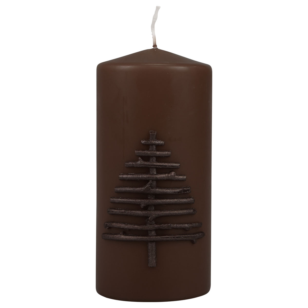 A stylized Christmas tree in a brown metallic color is applied to the front of the deep brown pillar candle, giving your candle decoration a tasteful, modern look. The non-colored wax of this Christmas candle is also of the highest quality. In addition to the RAL quality seal and the “Green Candle” label, this is also evidenced by the long burning time of around 63 hours.
