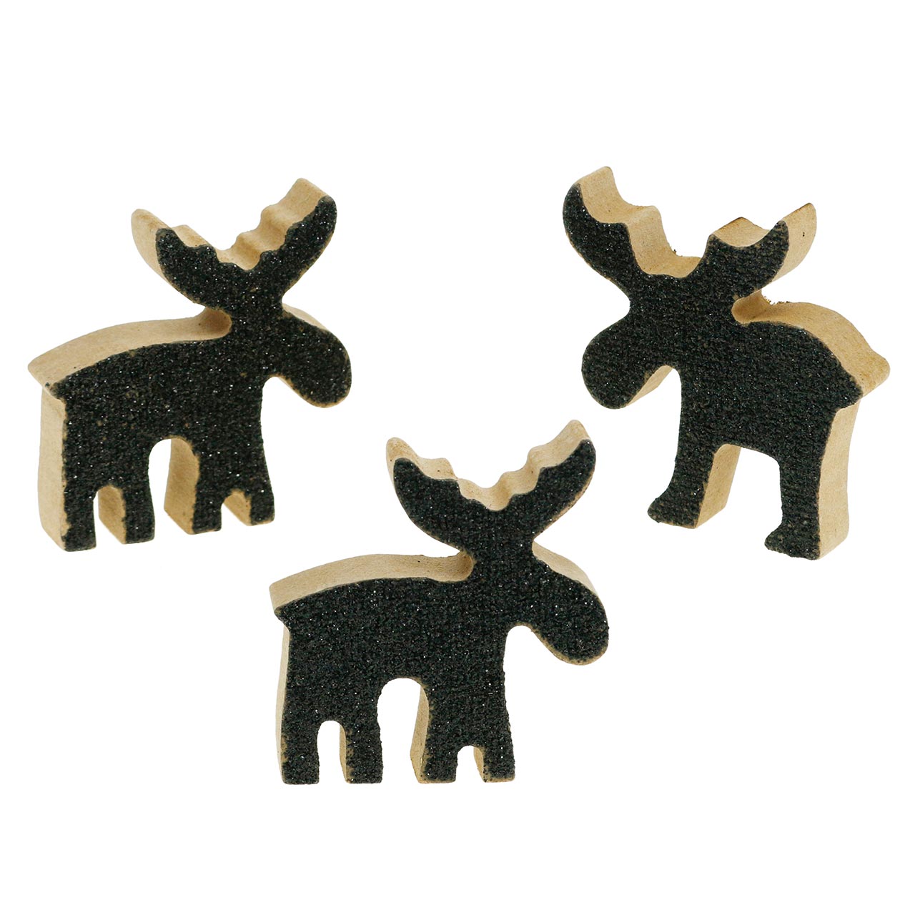 Christmas Decoration Elk Wood Black Glitter 5×5.5cm 12 pcs